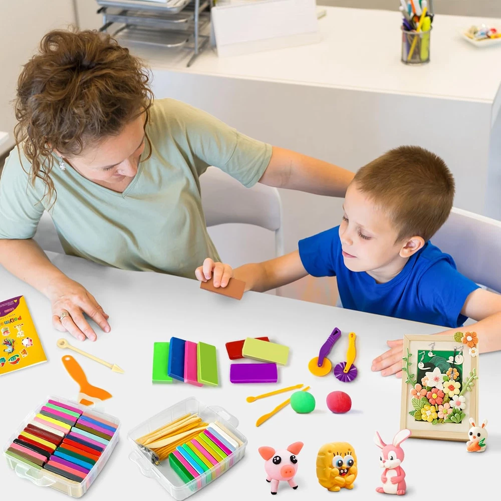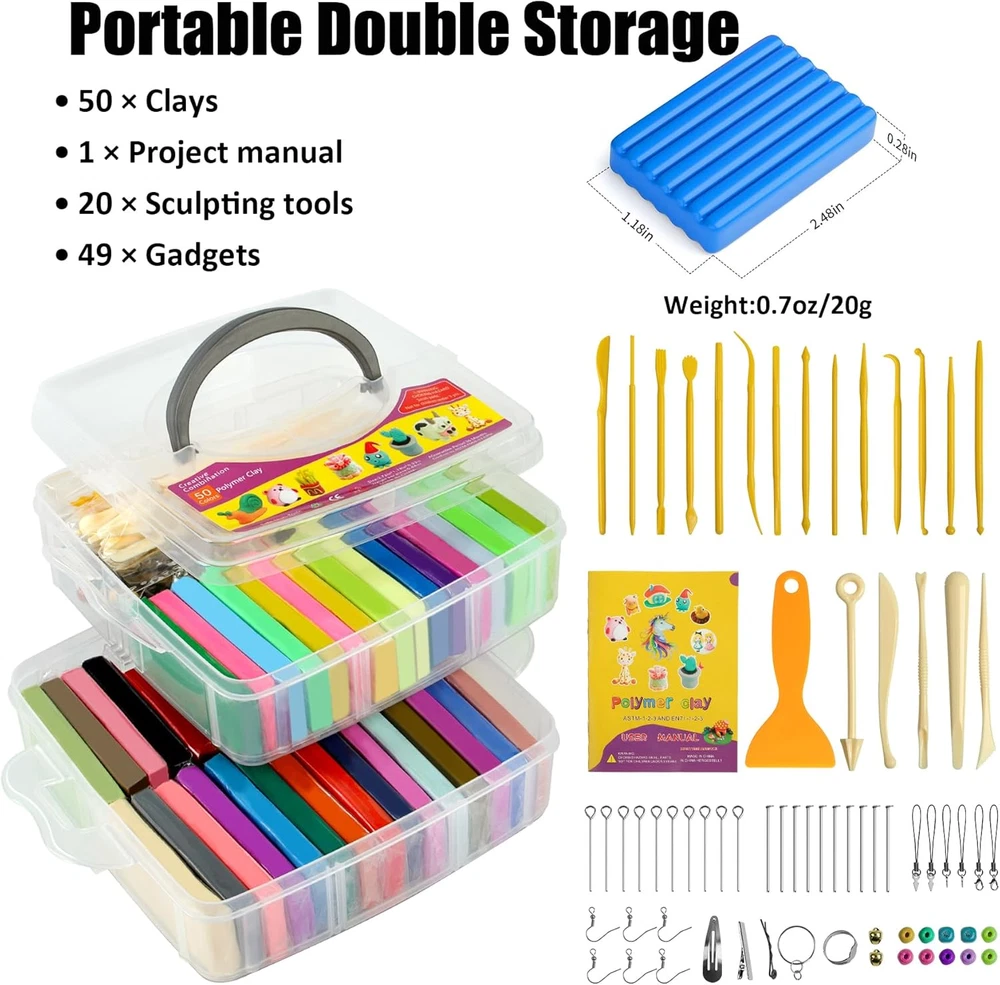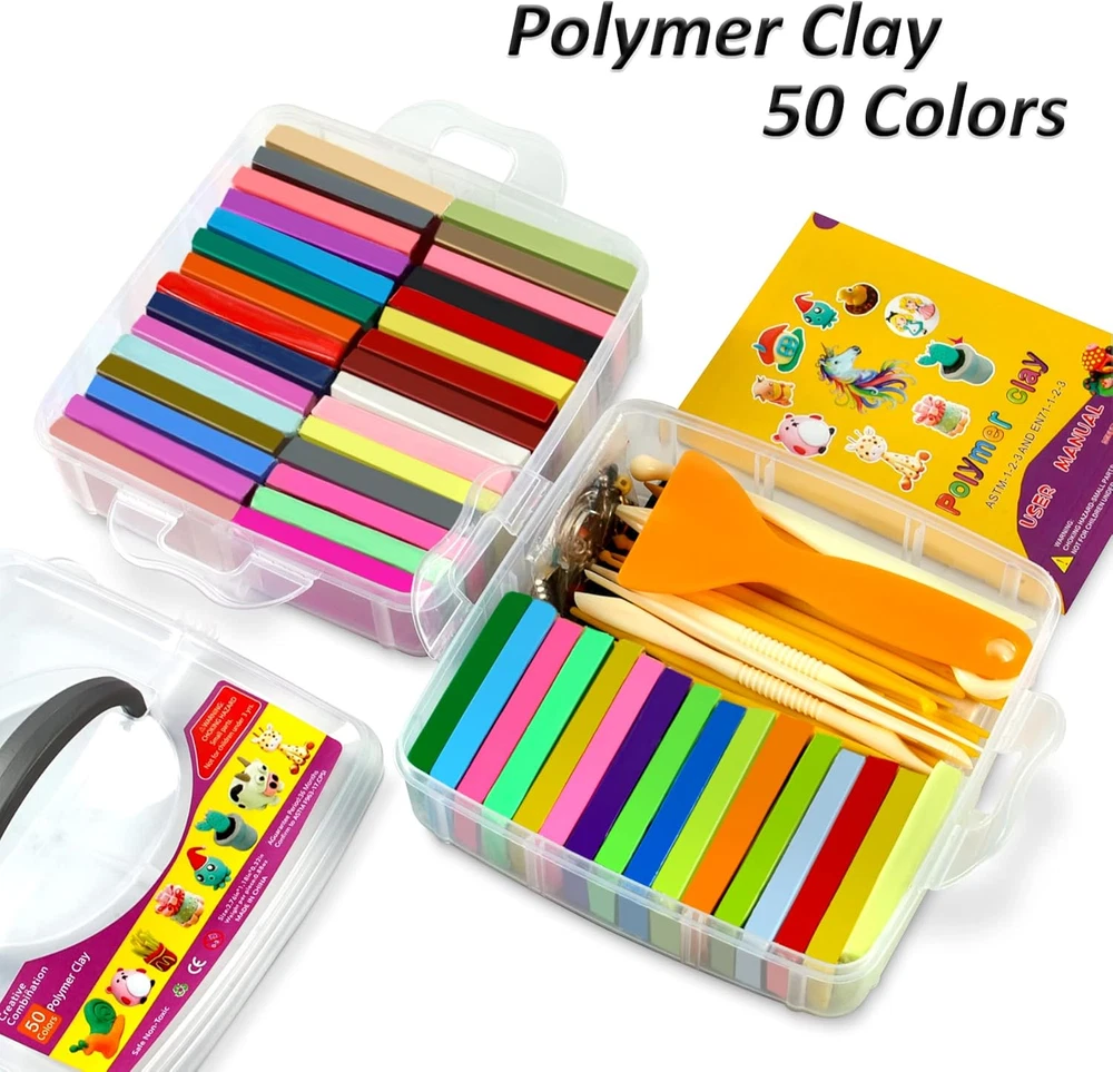 Store New Arrivals Add to Favorite View Feedback Contact Fast deliveries to the customer's home Quality customer service John Make the customers happy! Polymer Clay 52 Colors, Modeling Clay for Kids, Non-Sticky Oven Bake Clay with Sculpting Tools and Accessories, Halloween Christmas Gift for Children and Artists. Description Polymer Clay Kit: Includes 52 colors of modeling clay (20 grams/block), a project manual, 20 clay sculpting tools, and 49 decorative accessories, including bells, beads, earring hooks, hairpin holders, ring holders, key rings, pins, and cell phone chains, which will help to create beautiful ornaments Children's holiday gifts: Halloween gifts, Christmas gifts and birthday gifts for kids. Not only can they bring joy to children, but also explore their creativity, exercise hand-eye coordination, color perception and matching ability. Also suitable for school projects and parent-child activities Strict Standards: Aestd-ST strictly adheres to ASTM D-4236 standards and requirements and contains no wheat, nuts or peanuts. (WARNING: Smaller parts, not suitable for children under 3 years old) Features: Oven baked clay hardens when heated, does not harden on its own, reusable, easy to stretch, easy to shape, easy to carve, does not crack, does not stick to your hands. It is an introductory modeling clay for children and beginners to make trinkets, animal models and character models After Sales Service: If you have any questions about the products purchased in our store, please feel free to contact us, our customer service staff will provide you with professional and friendly service to solve your problems in a timely manner Product Description 1 Aestd-ST Polymer Clay Kit 2 Parent-Child Time 3 School Craft Classes 4 Kids Craft Party 5 Best Gift Contains everything a small artist needs 50 Pieces Of Colorful Clay Double Layer Storage Box 49 DIY Accessories 1 Manual & 20 Sculpting Tools Infinite Fun Create Art With Your Hands The video showcases the product in use. The video guides you through product setup. The video compares multiple products. The video shows the product being unpacked. WARM TIP: Recently some customers reacted that the clay is too hard, this is due to the cold weather, the polymer clay will become hard in low temperature, it is recommended to put it indoor for some time before use, or put it next to the fireplace to make it warm up until it becomes soft. 50L Color Polymer Clay Find What You Need 50 Colors Color 72 Colors Clay Tools 0.88 OZ 1 Piece Weight 0.88 OZ 3.3 Pounds Item Weight 5.6 Pounds Ages 3 and up Age Range Ages 3 and up Safetyes 50 Colors Color 50 Colors Clay Tools 0.88 OZ 1 Piece Weight 0.7 OZ 3.3 Pounds Item Weight 3 Pounds Ages 3 and up Age Range Ages 3 and up Safetyes 72L Color Polymer Clay 50L Color Polymer Clay Discover More from Aestd-ST Add to Cart Add to Cart Add to Cart Add to Cart Customer Reviews 4.5 out of 5 stars 468 4.5 out of 5 stars 3,236 4.5 out of 5 stars 3,236 4.5 out of 5 stars 3,236 4.9 out of 5 stars 40 Price $17.59 $ 17 . 59 $21.99 $ 21 . 99 $26.99 $ 26 . 99 $35.99 $ 35 . 99 $29.99 $ 29 . 99 Color 42 Colors 50 Colors 60 Colors 72 Colors 85 Colors Clay Tools ✔ ✔ ✔ ✔ ✔ 1 Piece Weight 0.43 OZ 0.7 OZ 0.7 OZ 0.88 OZ 07 OZ Item Weight 1.98 Pounds 2.86 Pounds 3.39 Pounds 4.9 Pounds 4.6 Pounds Age Range Ages 3 and up Ages 3 and up Ages 3 and up Ages 3 and up Ages 3 and up Safety ✔ ✔ ✔ ✔ ✔ Type Air Dry Clay Polymer Clay Polymer Clay Polymer Clay Polymer Clay Does the clay contain gluten? Does the clay contain gluten? No, it does not contain gluten and is free of allergens. Is this polymer clay reusable? Polymer clay does not dry naturally and you can reuse it. However, if it is dried in the oven, it cannot be reused. Does the clay crack when baked? No, please feel free to use it. How big is each piece of clay? Size: 2.67 x 1.06 x 0.35 inches, Weight: 0.88 oz. What is included in this clay kit? Includes 50 pieces of colorful modeling clay, 1 project booklet, 20 sculpting tools, 49 decorative accessories (bells, beads, earring hooks, hairpin holders, ring holders, key rings, pins, cell phone chains, etc.) Item model number L102G Included Components 49 decorative accessories, 1 project manual, 50 colors polymer clay, 20 clay sculpting tools Item dimensions L x W x H 6.6 x 6.5 x 4.2 inches Number of Items 52 Color 50 Colors Educational Objective Dexterity, Hand-Eye Coordination, Shape Recognition, Creative Skill, Color Recognition Material Polymer Clay, Clay Country of Origin China Item Weight 2.39 Ounces Age Range (Description) 3+, Kids,Teens, Adults Recommended Uses For Product Oven Bake, Modeling, Sculpting Model Name L102G Special Feature Mdeling Clay, Polymer Clay, Oven Bake Clay, Sculpting Clay Product Dimensions 6.6 x 6.5 x 4.2 inches ABOUT US We offer the best prices around on high quality products. Our E-store includes media such as books, movies, music and games while offering electronics, toys, sporting apparel, clothing, tools, general home, garden items and more. SHIPPING We are always working hard to ensure your package arrives as soon as possible. Please understand that some factors like weather, high postal traffic, and the performance of shipping companies are outside of our control. We offer free shipping to the lower 48 states and ship within 2 business days of payment, usually sooner. We do not accept P.O. Boxes. Please provide a physical address. For shipping outside of the continental USA, we only use eBay's Global Shipping Program. The item is shipped to KY and then sent to the rest of the world. International customers are responsible for all duties and taxes. Continue to 'check out' to calculate costs for shipping the item to your country. Messages regarding eBay's Global Shipping Program MUST be directed at eBay EXCLUSIVELY. RETURNS We offer a 30-Day Return Policy on items in which you are not completely satisfied with. You have the option of a full-refund or an exchange of the item. No retur