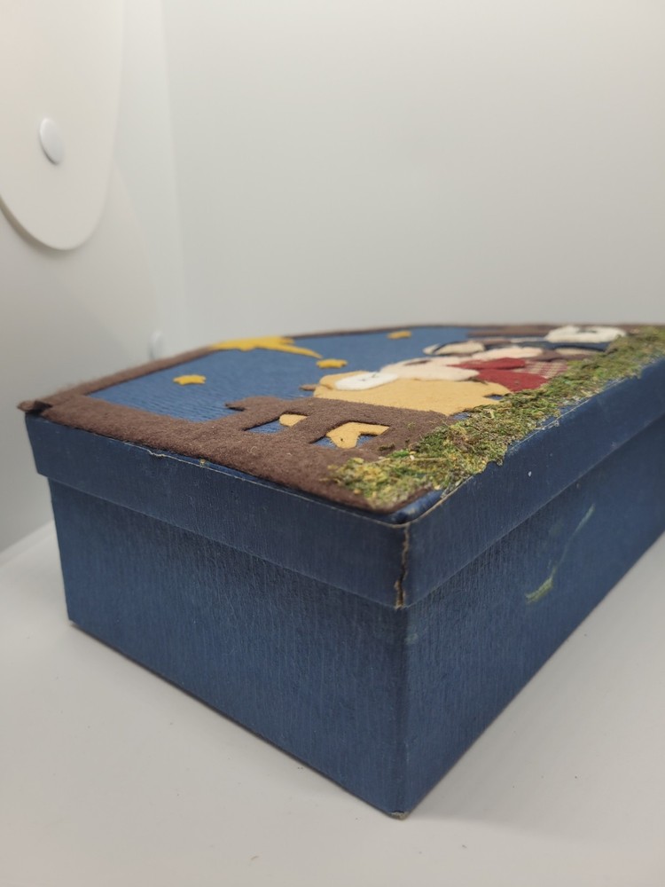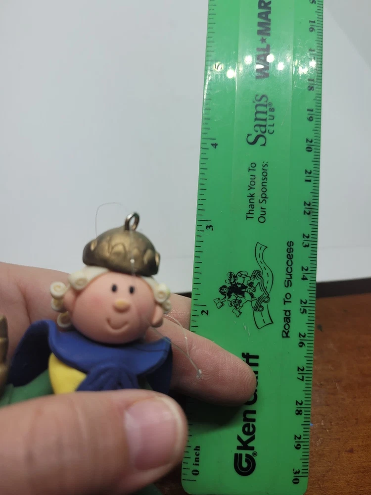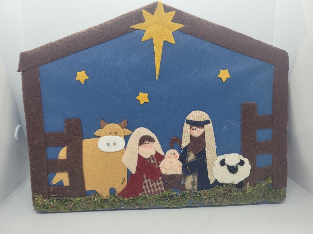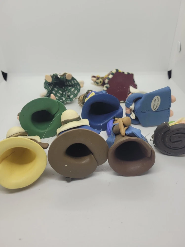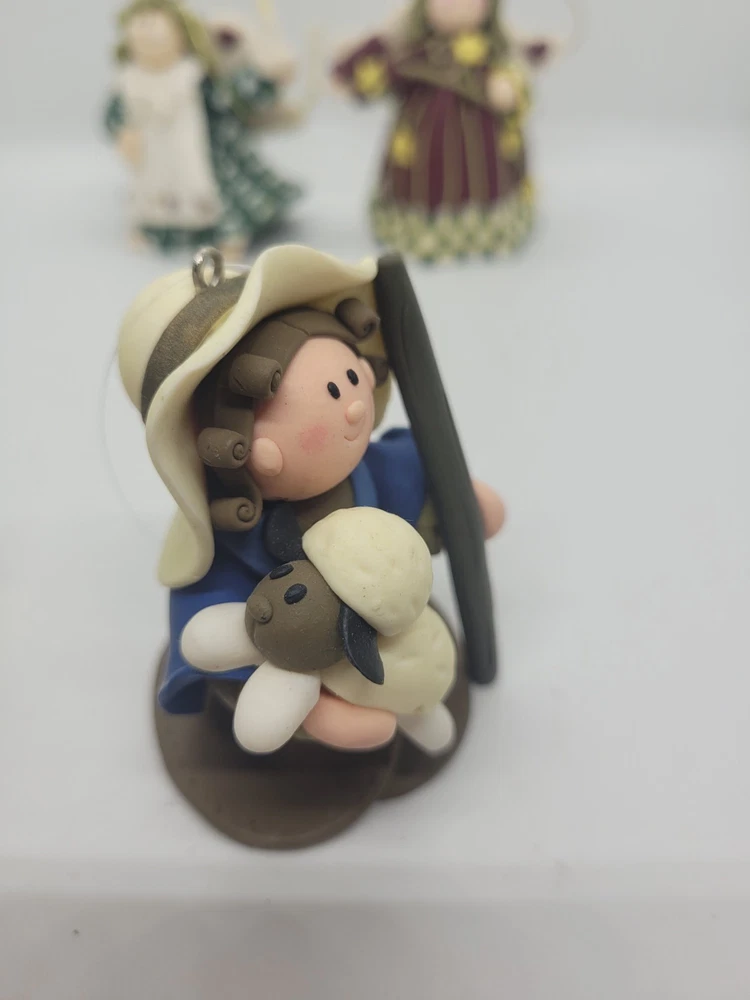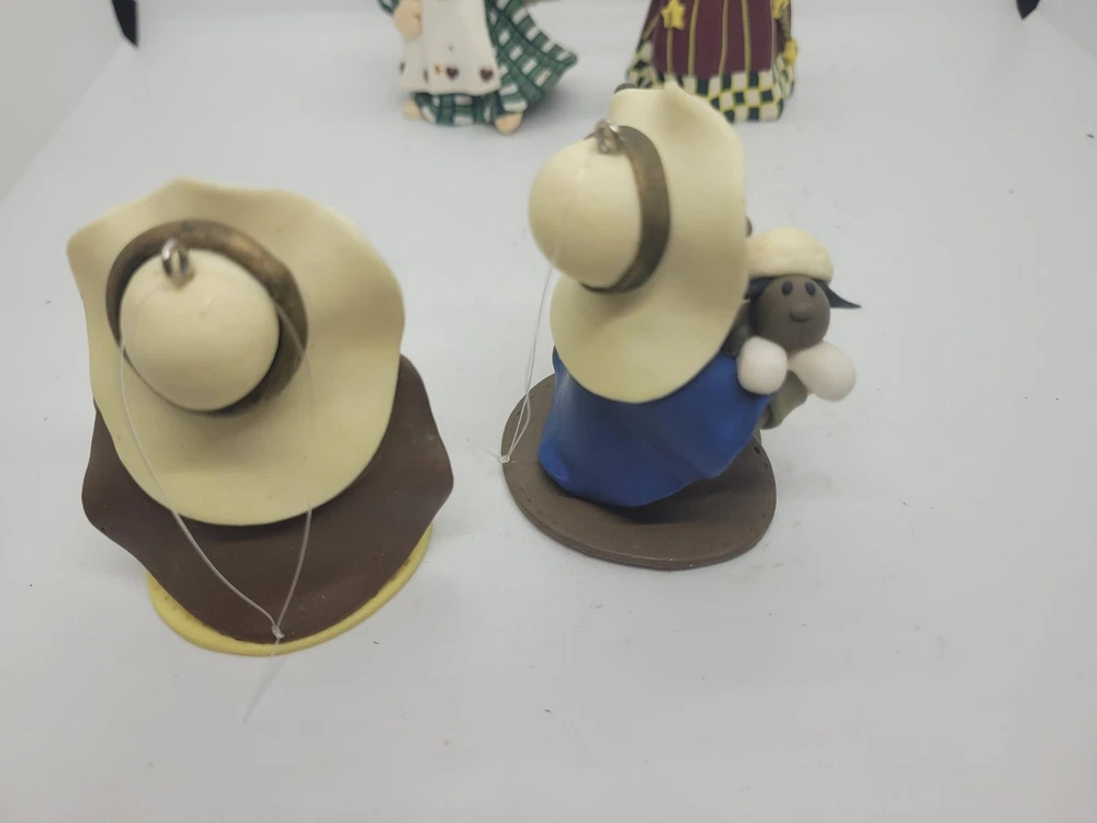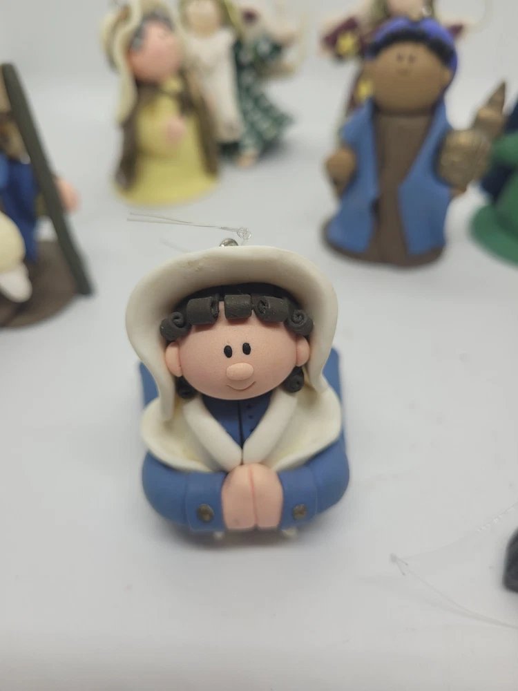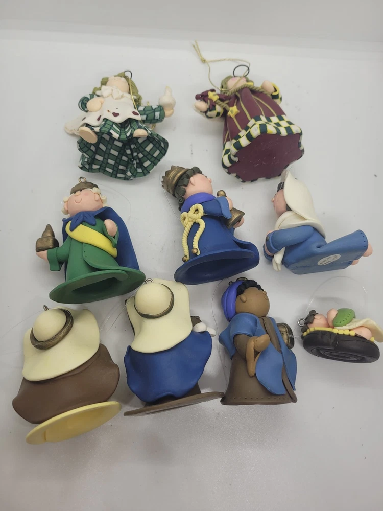 Such a unique nativity set! 9 pieces fit within a storage box that doubles as a Manger Scene. Each figurine can be used for tabletop display or hung as Christmas tree ornaments. This set includes Baby Jesus, Mary, 3 Wisemen, 2 angels, and 2 shepherds. Check out the pictures, there is so much detail! Reminds me of Kneaded Angels. Was possibly produced by BAF Creche. Smoke/pet free home.