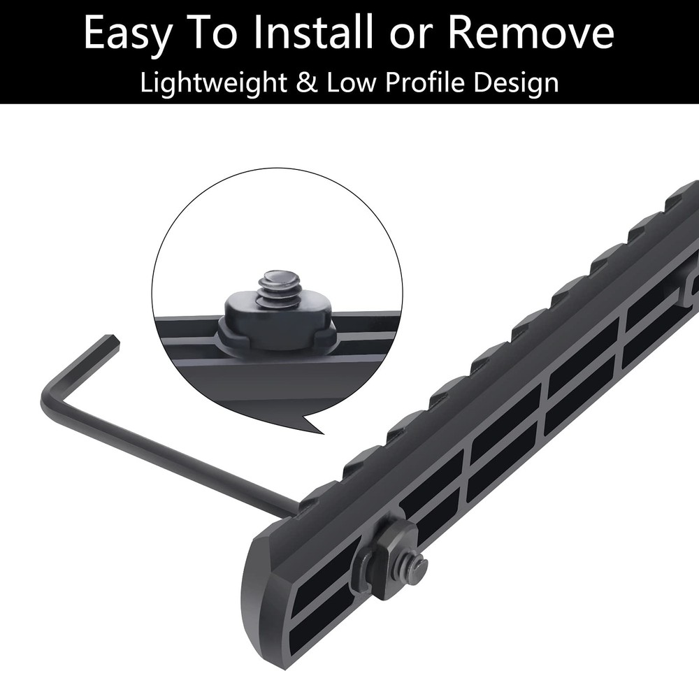 Packing list: nylon Single Picatinny Rails * 1 (6PCS), screws * 13, Product size *4.35cm 1*6.5cm 1 *8.5cm 1*10.5cm 1 *12.5cm 1*14.5cm Width 2.1cm The product is single picatinny rail.Allow the attachment of all standard 21mm picatinny specrail-mounted accessories. Can position just enough rail area exactly where you need it for each accessory, available in six lengths Install these screws by allen wrench tool, simple to install or remove. Pack of 3 5 7 9 11 13 slots, 13 sets matched screws, 13 sets locking T-Nuts and 2 allen wrench . Ultralight rail with solid polymer construction and low profile design reduces bulk. 13 Slots 0.65Oz, 11 Slots 0.56Oz, 9 Slots 0.48Oz, 7 Slots 0.36Oz, 5 Slots 0.28Oz, 3 Slots 0.19Oz, much lighter than aluminum alloy, high strength and good safety Injection molded from a proprietary reinforced composite for enhanced strength and durability while remaining lightweight, Rail Sections also feature beveled ends to reduce snagging and eliminate sharp corners and edges.