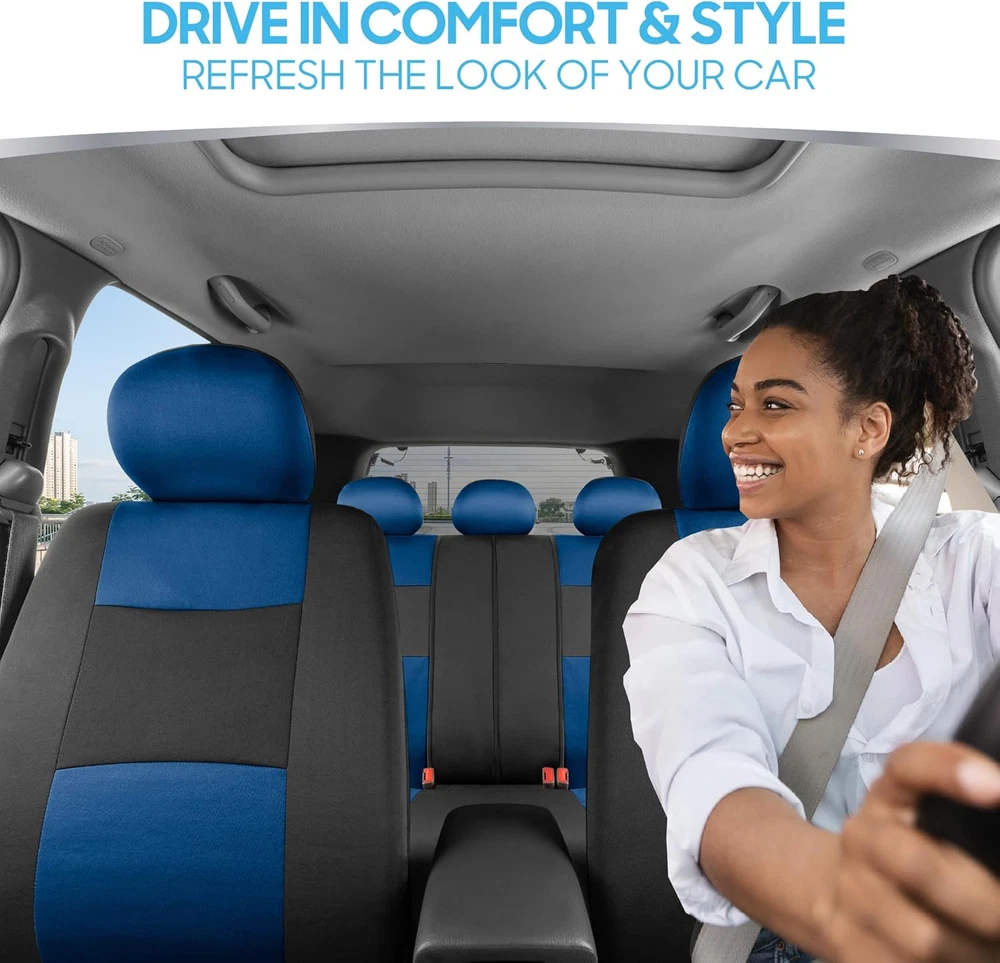 Store New Arrivals Add to Favorite View Feedback Contact Polypro Car Seat Covers Full Set in Blue on Black – Front and Rear Split Bench Seat Covers, Easy to Install, Car Accessories for Auto Trucks Van SUV Description Item model number OS309 Color Blue Country of Origin China Manufacturer Part Number OS-309-BL_kam Item Weight 2.38 pounds Automotive Fit Type Universal Fit Model PolyPro Fit Type Universal Fit Is Discontinued By Manufacturer No Package Dimensions 17.7 x 10.83 x 5.31 inches Material Polyester Auto Part Position Inside PROTECTS AGAINST WEAR & TEAR – These are the perfect seat covers for your new car, or even a car that’s just new-to-you. Our car seat covers provide protection against daily wear and tear that occurs inside of your vehicle. BREATHABLE MATERIALS – We use specially selected materials for maximum comfort during your daily commute. The high-quality poly outer layer provides enhanced ventilation so that you stay cool and comfortable during your drive. STYLISH DESIGN – Refresh the look of your vehicle and turn some heads along the way. This full set of seat covers features a stylish two-tone design with stitched accents, making it easy to add a splash of color to your interior. EASY TO INSTALL – The best investment for your new vehicle might also be the quickest. Follow the included installation instructions and videos on this page to install the front seat covers before finishing off with the rear bench seat cover and headrest covers. UNIVERSAL FIT – Our seat covers are designed to fit most vehicles including cars, trucks, vans and SUVs. Please see the product images for fitment examples. Some additional work may be required to create a ‘perfect’ fit. This includes accommodations for seat belt buckles and other built-in features. Add a layer of comfort & protection - package includes seat covers for front driver & passenger seats, rear bench cover. Premium "Rome" cloth material - feels like neoprene. Made for seats w/ Detachable headrests. Double stitched seams - toughest, durable & long lasting. 100% washable - breathable cloth prevents odors and dirt build up. ABOUT US We offer the best prices around on high quality products. Our E-store includes media such as books, movies, music and games while offering electronics, toys, sporting apparel, clothing, tools, general home, garden items and more. SHIPPING We are always working hard to ensure your package arrives as soon as possible. Please understand that some factors like weather, high postal traffic, and the performance of shipping companies are outside of our control. We offer free shipping to the lower 48 states and ship within 2 business days of payment, usually sooner. We do not accept P.O. Boxes. Please provide a physical address. For shipping outside of the continental USA, we only use eBay's Global Shipping Program.The item is shipped to KY and then sent to the rest of the world. International customers are responsible for all duties and taxes. Continue to check out in order to calculate costs for shipping the item to your country. Messages regarding eBay's Global Shipping Program MUST be directed at eBay EXCLUSIVELY. RETURNS We offer a 30-Day Return Policy on items which you are not completely satisfied with. You have the option for a full-refund or an exchange of the item. No returns are available on items shipped outside of the USA. PAYMENT We accept PayPal. CONTACT US This page content is yet to come Please ad us to your favorite seller and visit again later Thank You CUSTOMER SATISFACTION We try our very best to make sure every customer is completely satisfied. If there's a problem, message us! We're happy to help. WE ACCEPT Copyright © 2021 AutoDS. | All Rights Reserved