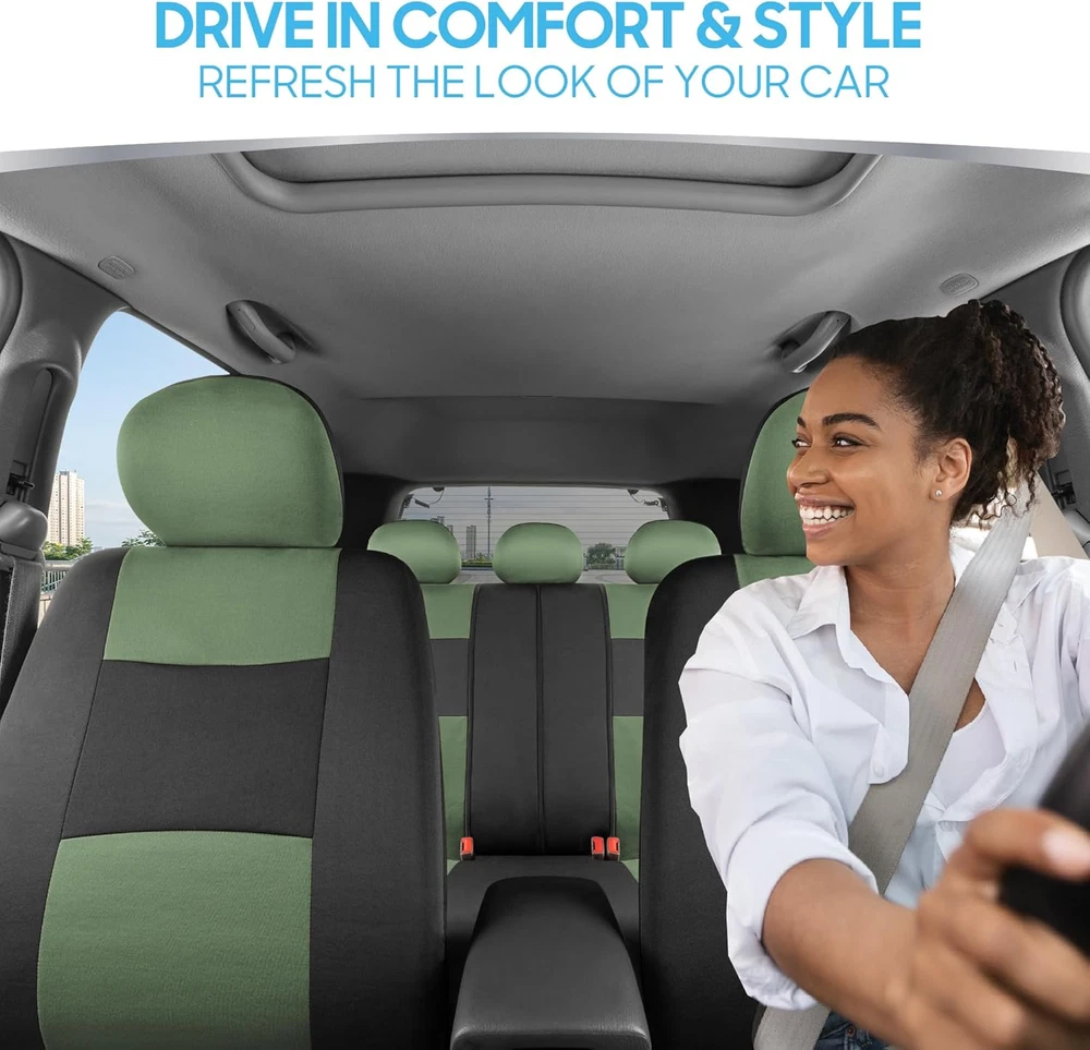 Store New Arrivals Add to Favorite View Feedback Contact Polypro Car Seat Covers Full Set in Green on Black, Front and Rear Split Bench Seat Covers for Cars, Easy to Install Car Seat Cover Set, Car Accessories for Auto Trucks Van SUV - Green Description Item model number OS309 Color Green Country of Origin China Manufacturer Part Number OS309 Material Polyester Auto Part Position Inside Item Weight 2.5 pounds Model PolyPro Fit Type Universal Fit Package Dimensions 17 x 14 x 4 inches PROTECTS AGAINST WEAR & TEAR – These are the perfect seat covers for your new car, or even a car that’s just new-to-you. Our car seat covers provide protection against daily wear and tear that occurs inside of your vehicle. BREATHABLE MATERIALS – We use specially selected materials for maximum comfort during your daily commute. The high-quality poly outer layer provides enhanced ventilation so that you stay cool and comfortable during your drive. STYLISH DESIGN – Refresh the look of your vehicle and turn some heads along the way. This full set of seat covers features a stylish two-tone design with stitched accents, making it easy to add a splash of color to your interior. EASY TO INSTALL – The best investment for your new vehicle might also be the quickest. Follow the included installation instructions and videos on this page to install the front seat covers before finishing off with the rear bench seat cover and headrest covers. UNIVERSAL FIT – Our seat covers are designed to fit most vehicles including cars, trucks, vans and SUVs. Please see the product images for fitment examples. Some additional work may be required to create a ‘perfect’ fit. This includes accommodations for seat belt buckles and other built-in features. Add a layer of comfort & protection - package includes seat covers for front driver & passenger seats, rear bench cover. Premium "Rome" cloth material - feels like neoprene. Made for seats w/ Detachable headrests. Double stitched seams - toughest, durable & long lasting. 100% washable - breathable cloth prevents odors and dirt build up. ABOUT US We offer the best prices around on high quality products. Our E-store includes media such as books, movies, music and games while offering electronics, toys, sporting apparel, clothing, tools, general home, garden items and more. SHIPPING We are always working hard to ensure your package arrives as soon as possible. Please understand that some factors like weather, high postal traffic, and the performance of shipping companies are outside of our control. We offer free shipping to the lower 48 states and ship within 2 business days of payment, usually sooner. We do not accept P.O. Boxes. Please provide a physical address. For shipping outside of the continental USA, we only use eBay's Global Shipping Program.The item is shipped to KY and then sent to the rest of the world. International customers are responsible for all duties and taxes. Continue to check out in order to calculate costs for shipping the item to your country. Messages regarding eBay's Global Shipping Program MUST be directed at eBay EXCLUSIVELY. RETURNS We offer a 30-Day Return Policy on items which you are not completely satisfied with. You have the option for a full-refund or an exchange of the item. No returns are available on items shipped outside of the USA. PAYMENT We accept PayPal. CONTACT US This page content is yet to come Please ad us to your favorite seller and visit again later Thank You CUSTOMER SATISFACTION We try our very best to make sure every customer is completely satisfied. If there's a problem, message us! We're happy to help. WE ACCEPT Copyright © 2021 AutoDS. | All Rights Reserved