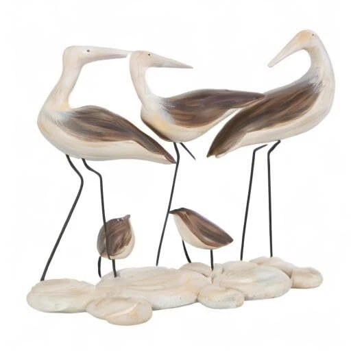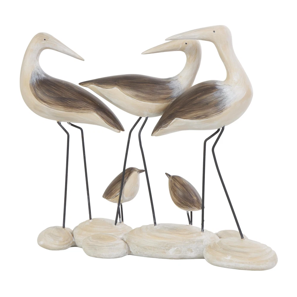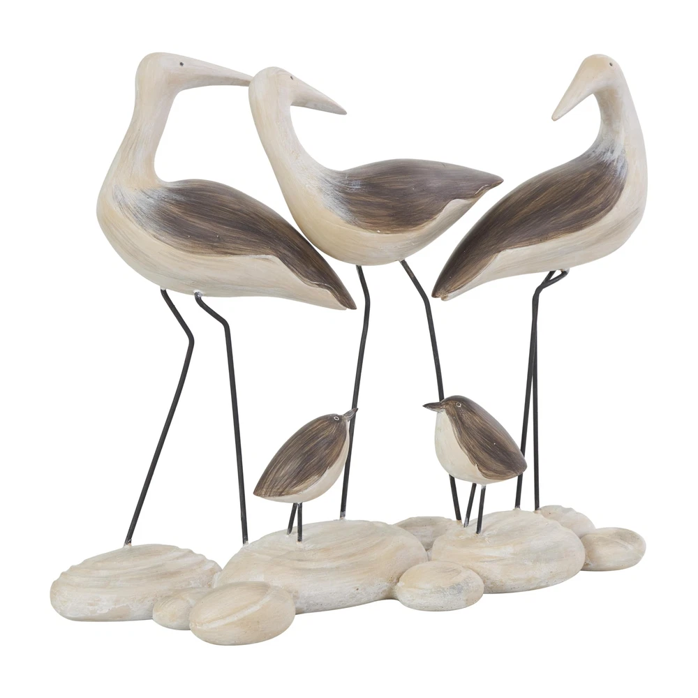 This coastal accent statue's polystone material allows for intricate detailing and shaping, resulting in a lifelike representation of the bird family while the rock base adds stability and an element of realism to the scene. The sculpted birds exhibit lifelike textures and details, while the cream rock base replicates natural beach stones' appearance, adding a coastal touch to your decor with this matte brown home decor figurine. Wipe clean with a dry cloth. Elevate your living room decor by placing this bird home decor statue on a coffee table, infusing a touch of nature and warmth into your space. Designed with felt or rubber stoppers at the base that prevent scratching furniture and table tops, as well as sliding around. This item ships in 1 carton. Please note that this item is for decorative use only. Polystone sculpture makes a great gift for any occasion. Suitable for indoor use only. This item ships fully assembled in piece. This is a single brown colored statue. Coastal style. COASTAL DECORATIVE STATUE: Inspired by blissful and the allure of the sea, where soothing hues and natural textures bring effortless charm to the home POLYSTONE SCULPTURAL ACCENT: Crafted from polystone and stone , this brown decorative sculpture seamlessly combines the beauty of nature with coastal aesthetics BROWN AND CREAM HOME DECOR FIGURINE: This asymmetrical decorative statue features a combination of colors, with brown hues and cream accents, elegantly complemented by a matte finish BIRD ASYMMETRICAL ACCENT STATUE: This polystone sculpture shows a depiction of a bird family of five, capturing a heartwarming moment in nature that adds charm to any setting SMALL SIZE SCULPTURAL STATUE: The brown polystone sculpture measures 14.3L x 4.6W x 11.95H inches, and weighs 4.84 lbs