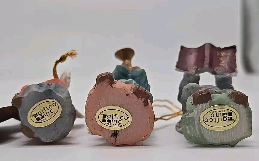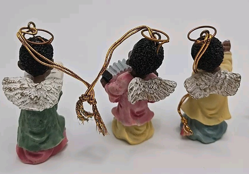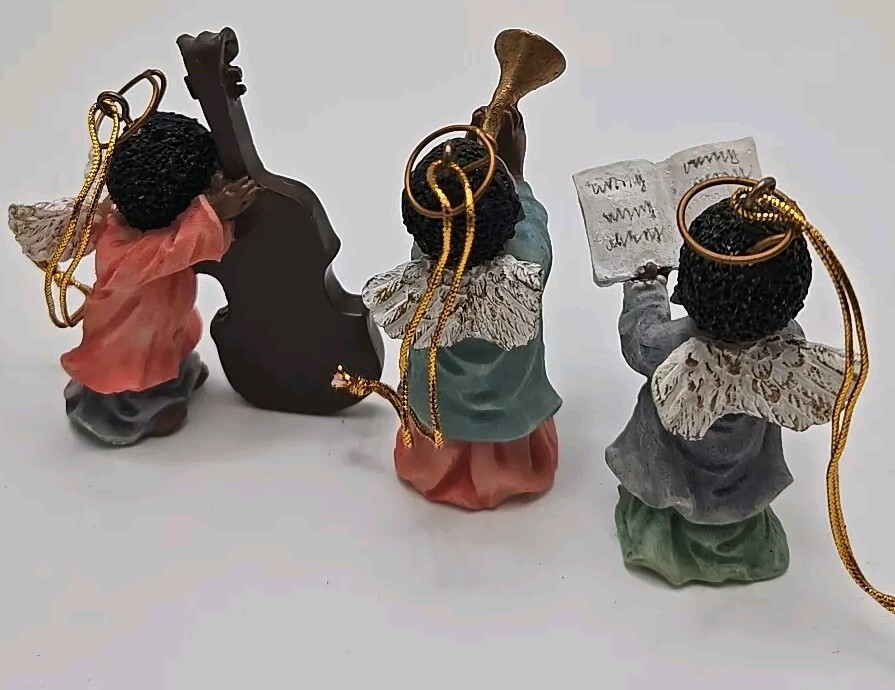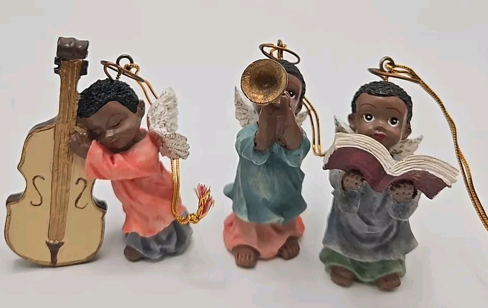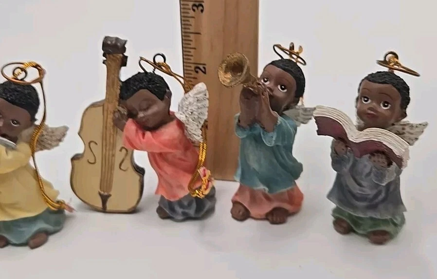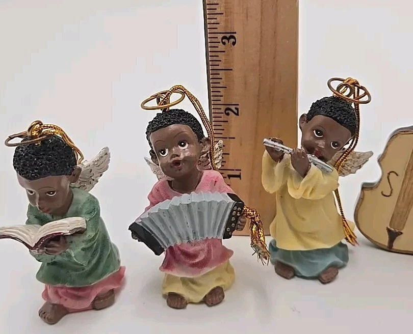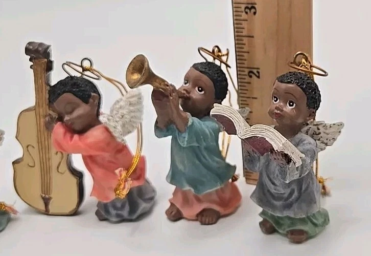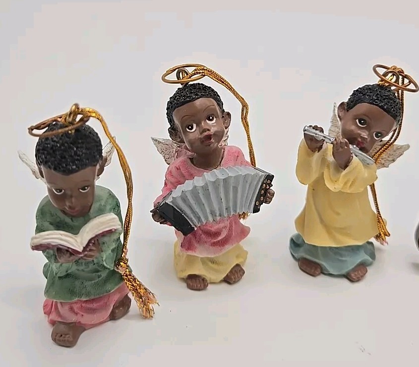 Add a celestial touch to your holiday decor with the Polystone Angels set. This charming collection includes 6 angels. Designed by Gift Co Inc, these resin angels are imbued with the holiday season's essence and are perfect for anyone who loves music-themed items. Pre-owned ornaments with no chips or cracks. These angels are figurine ornaments they are not made to play music. See photos for details and sizing as they are part of my description. Message me with any questions you may have. Thank you,and please take a look at my other items V-27