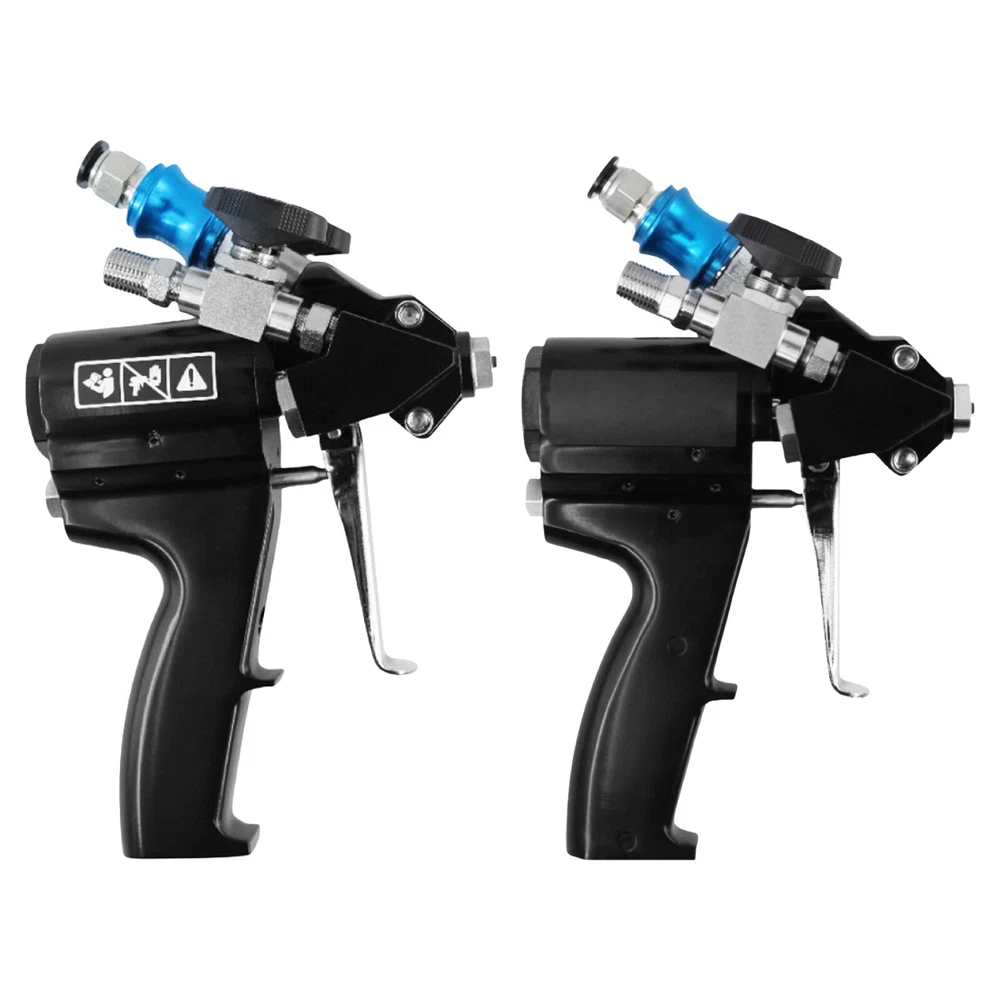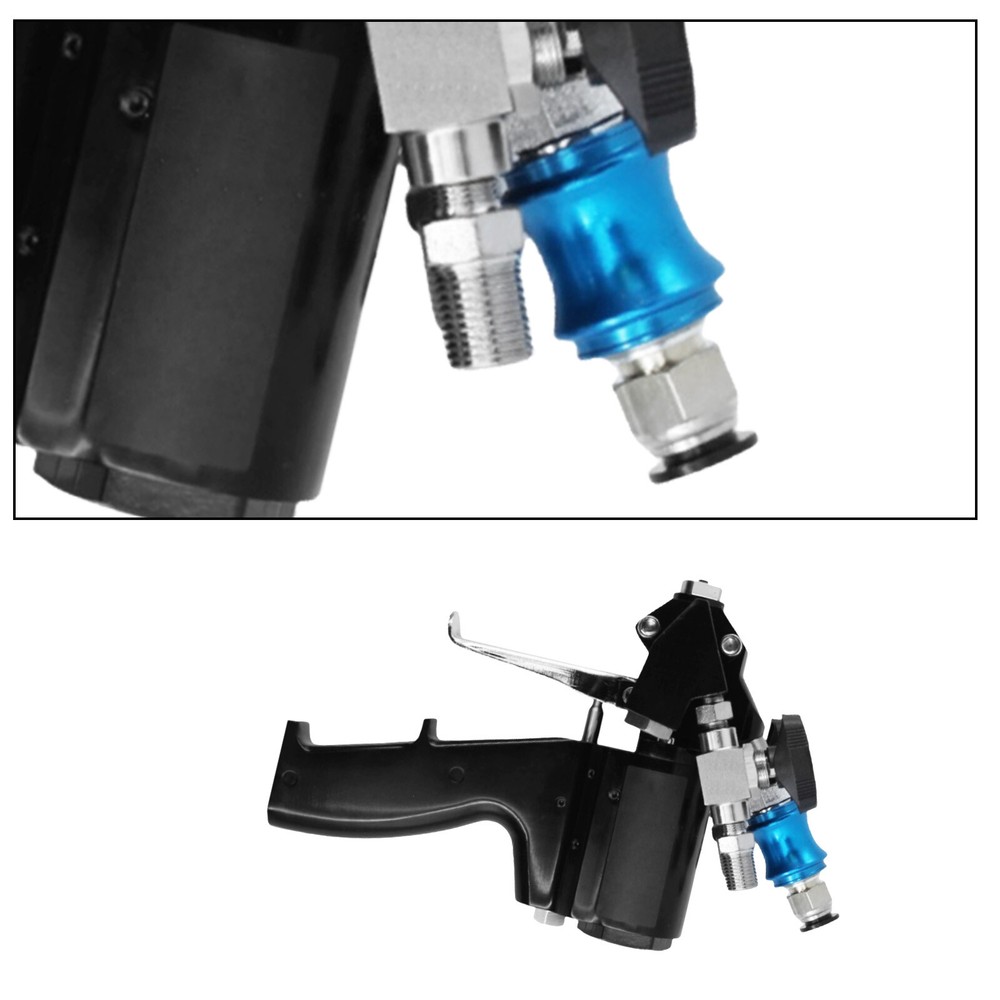 Description Black 35Mpa P2 PU Foam Spray Gun Air Purge Spray Gun Self Cleaning with Air Fast Features: 1. The pipe joint Angle, reduce the gun load, make operation easy. 2. Gas valve can prevent trigger is stuck. 3. Gas auxiliary spring can quickly cut into the mixing head of raw materials. 4. Jet linear continuous and smooth, no field control. 5. Pneumatic wrench can reduce the labor intensity of operators. 6. All steel hybrid head, output, precise control of spraying position, reduce the waste of raw materials, particularly applicable to residential construction between two walls of spraying. 7. Single valve device can prevent ISO material and POLY material flow back, and not apart gun, which can check the gun inside most of the seal. 8. Use manual switch valve, no tool can quickly and easily switch gun. 9. High pressure vacuum mixed to ensure the best Specifications: Product: Foam Spray Gun Max.fluid working pressure: 24Mpa Air inlet pressure: 0.4-0.8mpa Cleaning method: self-cleaning with air Working flow: 2-9kg/min Mix Chamber Size: 1.3mm Spray nozzle size: 1.6mm Gross weight: 2.0kg Packing size: 210*100*100mm Optimal spray distance: 0.5-1m Spraying material: polyurethane, polyurea Uses: tank pouring, panel house spraying, model casting, sculpture spraying, container spraying, cold storage spraying, exterior wall insulation, tank insulation, passenger car compartment, profile filling, etc. NOTE: Need to be used with air compressor and polyurethane spraying machine Package List 1 x P2 PU Foam Spray Gun On Sep 9, 2024 at 08:07:03 PDT, seller added the following information: On Jul 17, 2025 at 02:02:36 PDT, seller added the following information: