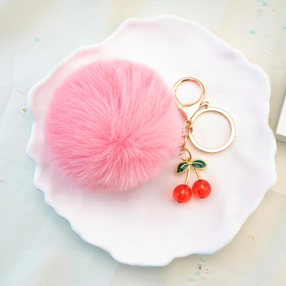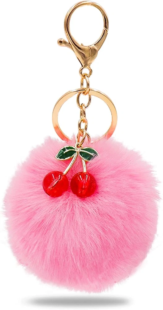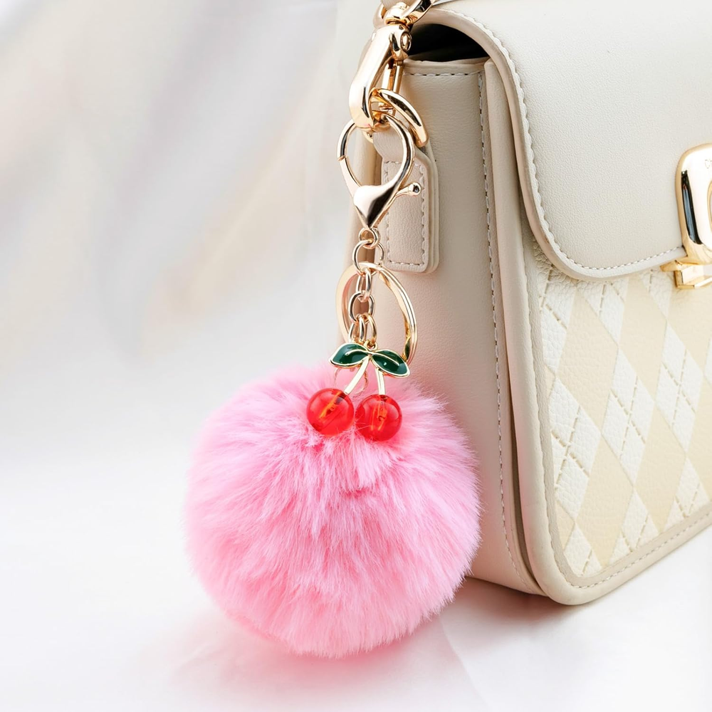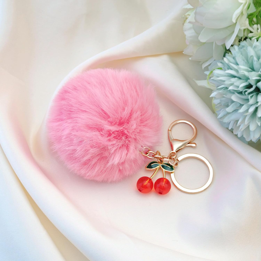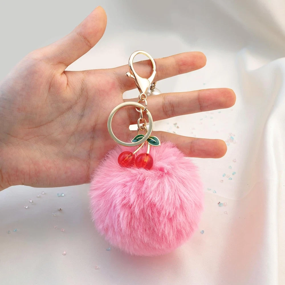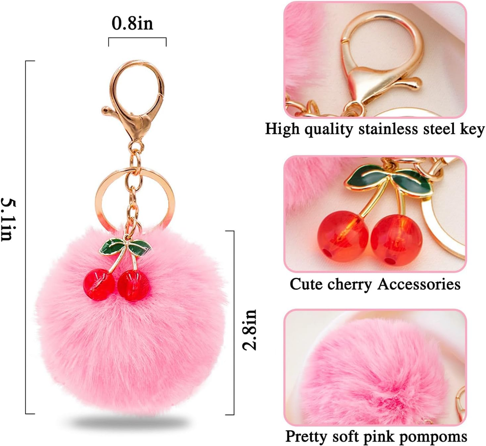 Pom Pom Keychain Cherry Charm for Purse Key Chain Cute Accessories for Women