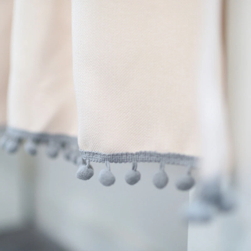 Lotus root pink beige small fur ball cabinet door curtain Style American Processing method Specifications 130 left and right width * 60 upper and lower height tile size single piece Fabric: Blended Use cabinet door curtain or curtain or door curtain, rod type, rod purchased separately Weight 500g