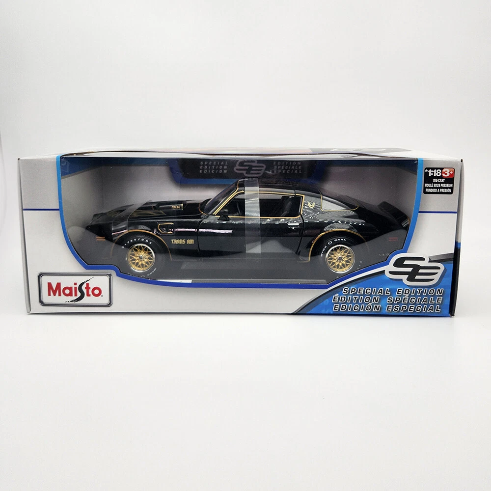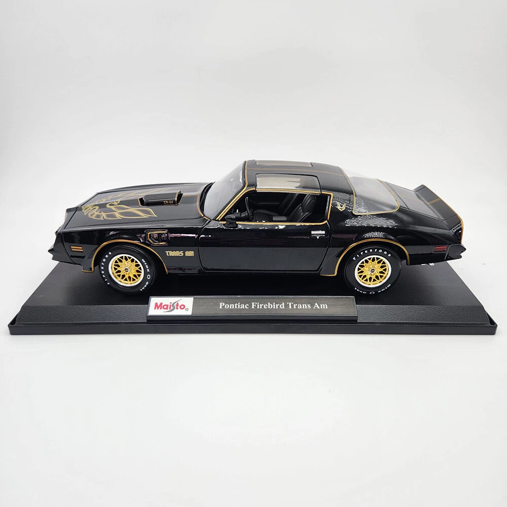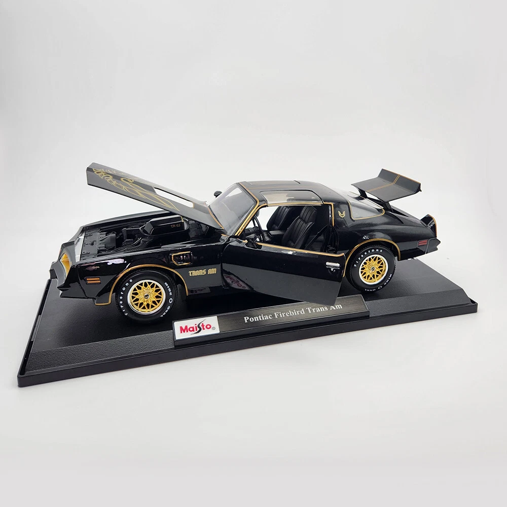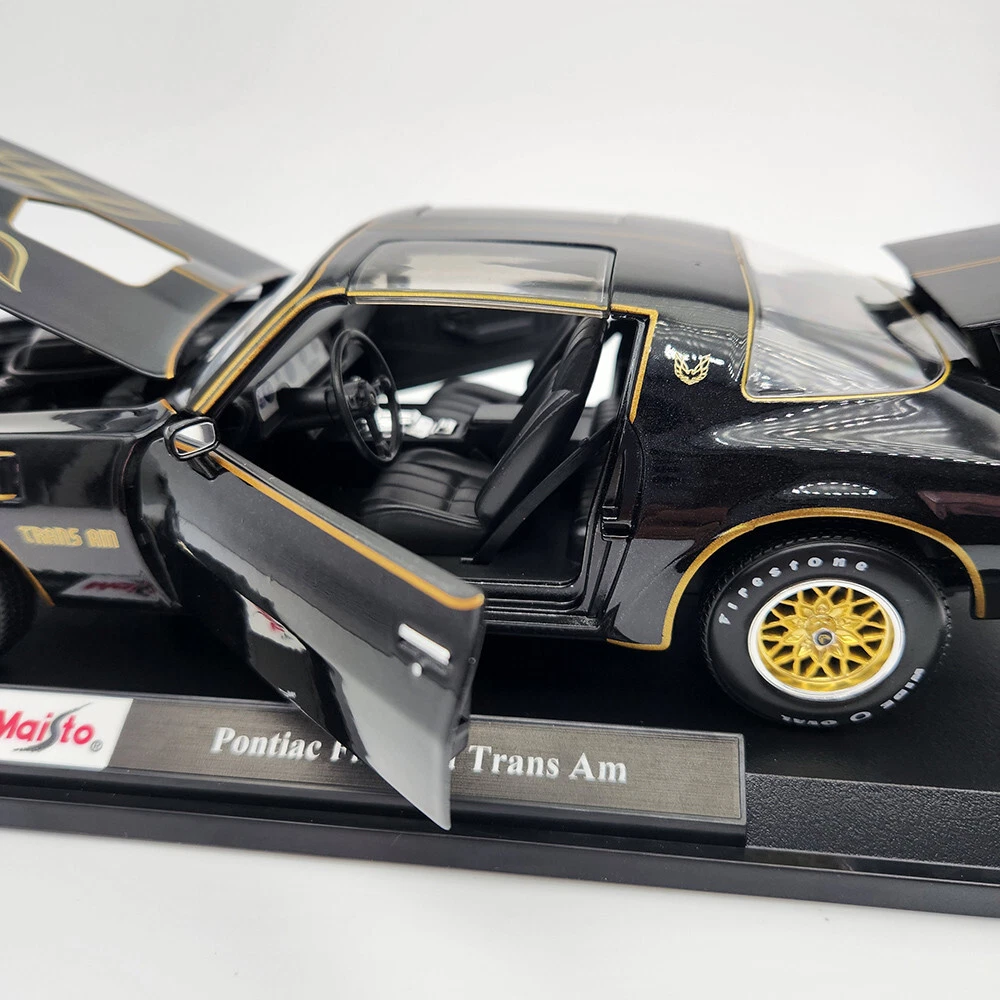 Pontiac Firebird Trans Am - Black With Gold Trim - 1996 To 2002 - By Maisto - 1:18 Diecast Model With Opening Doors - Hood - Trunk. It Measures 10 Inches Or 25 CM In Length And 4 Inches Or 10 CM In Width. In Stock And Ready To Ship.