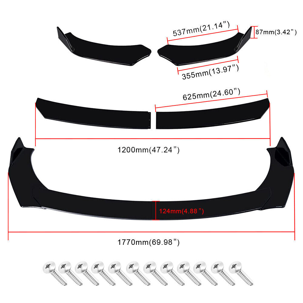 Package Included 1:Front Lip Chin Bumper Specification: Condition: 100% Brand New Type: Front Lip Chin Bumper Body Kits Material: ABS Color: Glossy Black Placement on Vehicle: Front ; Lower Features: Give your vehicles sporty appearance Protect Your Bumper From Scratching Strict quality control standards to Build and test. Come With Screws, Pre-drilled holes for quick installation Professional Installation Is Highly Recommended. Fit for Universal width 75". Package Included 2:Side Skirt ( 2pcs ) Specification: Condition: 100% Brand New and High Quality Type: Car Body Side Skirts Material: ABS Color: Glossy Black Side Skirt Size: 86.6inch Position: Side Skirt Extension Features: Universal modified side skirt for car sedan. While the side skirts don't affect the front ground clearance too much, it enhances the side extension of the in a very pure and exciting way. A Perfect Aftermarket Replacement. Professional Installation Is Highly Recommended. Package Included 3:Rear Lip ( 2pcs ) Specification: Condition: 100% Brand New and High Quality Type: Car Body Rear Lip Material: ABS Color: Glossy Black Rear Lip Size:17.32 in x 4.33 in Placement on Vehicle: Left, Right Package Included 4: Strut Rods(2pcs) Product Description This listing features for one pair (2 pieces) of blue front bumper lip splitter rod strut tie bar. These front bumper lip support rods are used to reinforce your front splitter or rear diffuser. It is universal fit for any cars, SUVs, trucks. You can extend its length from 8 inches to 11 inches. Specification * One pair (2 pieces) front bumper lip splitter rod strut tie bar * Material: Made with premium quality aluminum alloy chrome finish * The length can be adjustable from 8" to 11" * These include fully articulated top and bottom joins which allow them to be installed at any angle * It will support your vehicle bumper lip splitter stronger with and awesome eye-catching look We have Black, Red, Silver and Blue color in stock. Pls contact us if you want other color Package Includes: 4pcs/set Front Lip Chin Bumper Body Kits 2x Side Skirts 2x Rear Lip 2 x Adjustable Strut Rods Screws kit