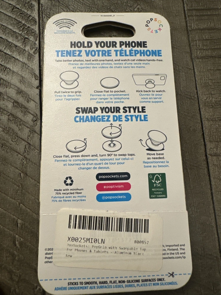 PopSockets PopGrip with Swappable Top for Phones & Tablets - Black (800857). Condition is New. Shipped with USPS Ground Advantage.
