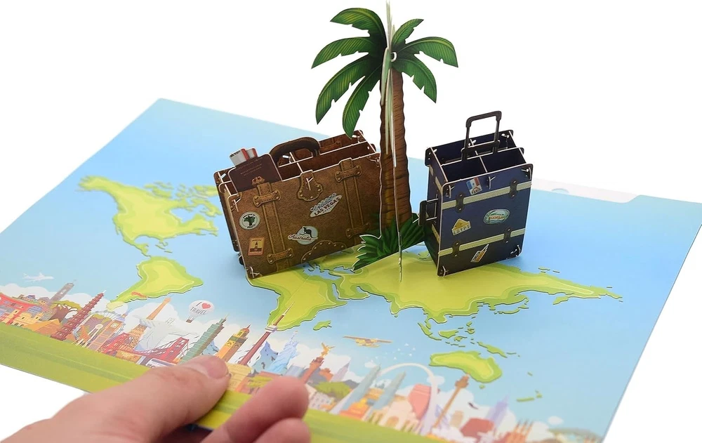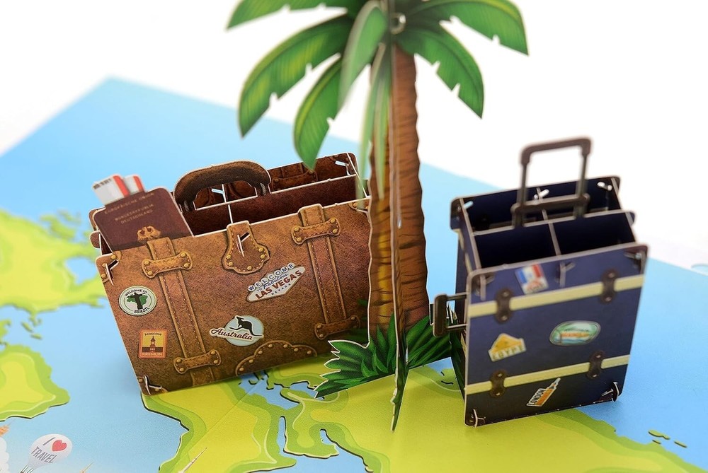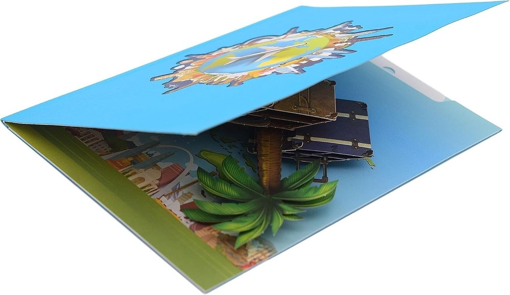 Pop-Up travel voucher - 3D voucher card for vacation gift, gift travel This product data sheet is originally written in English. The Perfect Travel Gift : Looking for a unique and unforgettable gift for someone traveling abroad? Our 3D Pop-Up Travel Voucher card is perfect for any occasion, whether it’s a honeymoon, a wedding gift, or simply a surprise for a globetrotter. It's the ultimate way to wish someone well on their journey. Magical 3D Design : When the card is opened, a beautiful scene unfolds featuring suitcases, a palm tree, and a world map. The vibrant colors and detailed design will amaze the recipient, creating an unforgettable moment. For added fun, slip money into the suitcase cut-out for an extra surprise, making the experience even more memorable. A Keepsake Card : This card is designed to be cherished long after the occasion. Measuring 12.7 x 17.8 cm, it comes with an envelope and a pull-out message card. It’s a keepsake that will be displayed and appreciated for years to come. Designed to Impress : Handcrafted with intricate detail and premium materials, this travel voucher card is more than just a card—it’s a piece of art. Perfect for any occasion, it’s a meaningful gift that will truly stand out. The Perfect Travel Gift: Looking for a unique and unforgettable gift for someone traveling abroad? Our 3D Pop-Up Travel Voucher card is perfect for any occasion, whether it’s a honeymoon, a wedding gift, or simply a surprise for a globetrotter. It's the ultimate way to wish someone well on their journey. Magical 3D Design: When the card is opened, a beautiful scene unfolds featuring suitcases, a palm tree, and a world map. The vibrant colors and detailed design will amaze the recipient, creating an unforgettable moment. A Keepsake Card: This card is designed to be cherished long after the occasion. Measuring 12.7 x 17.8 cm, it comes with an envelope and a pull-out message card. It’s a keepsake that will be displayed and appreciated for years to come. Designed to Impress: Handcrafted with i Brand ASVP Shop Type Pop Up Card Features Including Envelope EAN 5060736896457