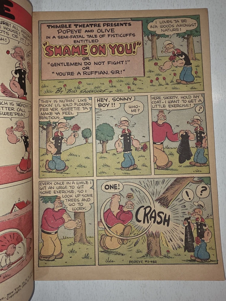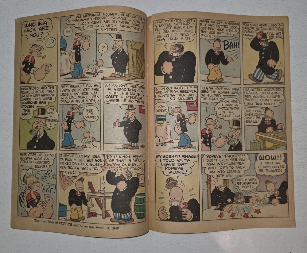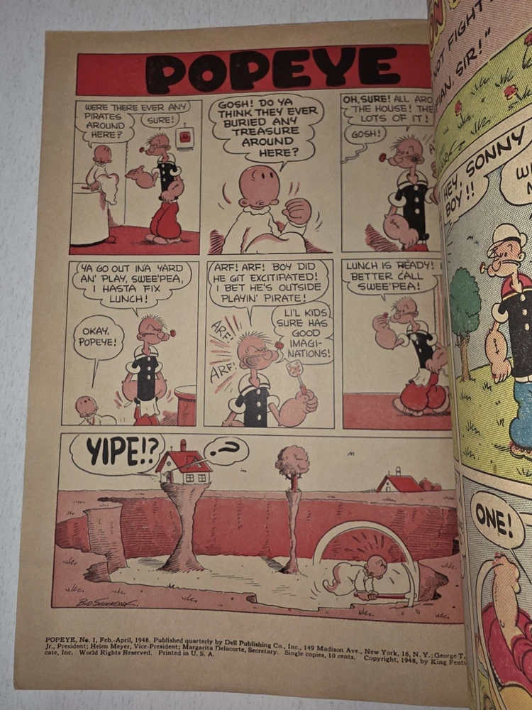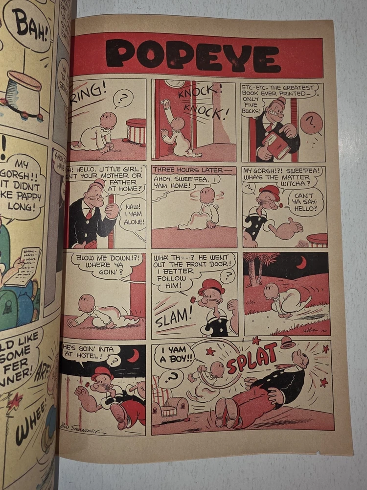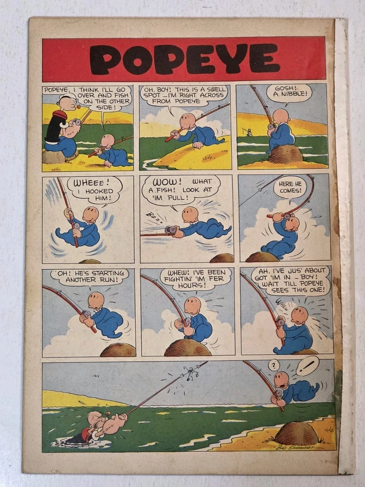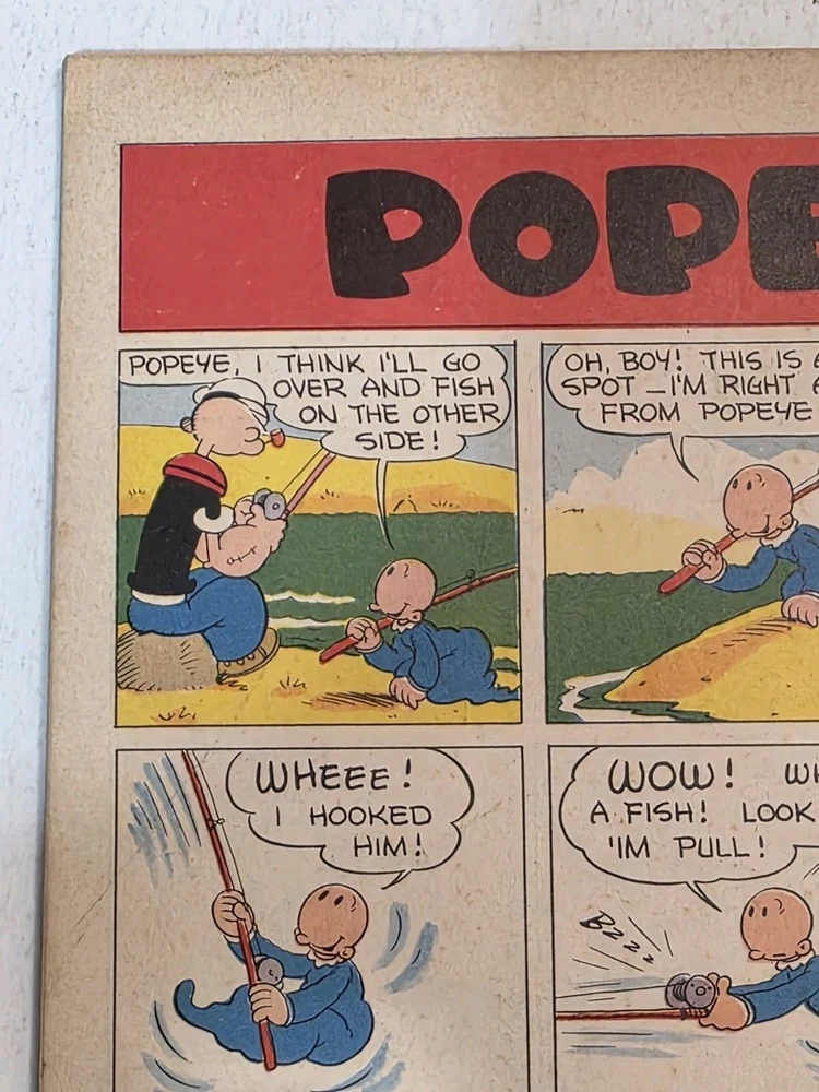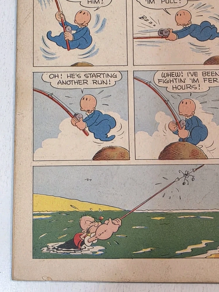 The product is a Popeye #1 comic book from 1948, featuring artwork by Bud Sagendorf. This vintage Golden Age comic book is a restored off-white copy with a Restored Very Good grade range. It includes the classic characters Popeye and Swee'Pea in a humorous and satirical style, making it a valuable collectible for fans of US Comics and comic book history. The publication by Dell aimed at a general audience, with the first edition printing being a single issue in English language. - Complete, spine has white tape to fastened with lack of staples. Pages are White to off white . Cover still colorful and vibrant Interior is stellar. See pictures - Bagged and boarded - Shipped with Gemini packing to insure no damage during shipping - Usps Priority Check out our 1000s of comics in our store We combine shipping