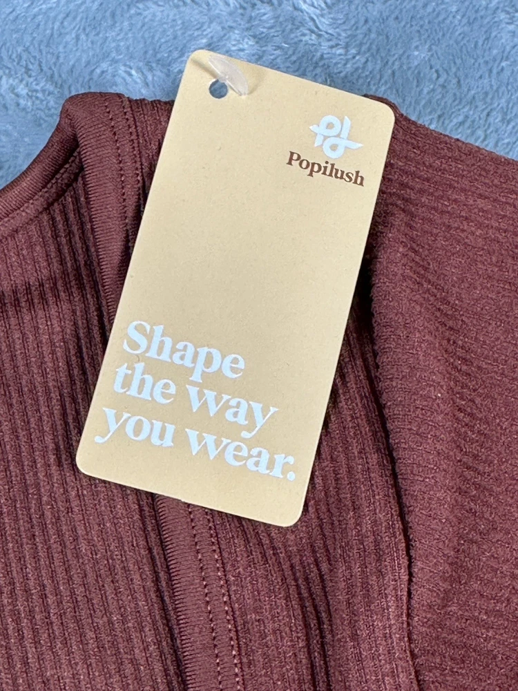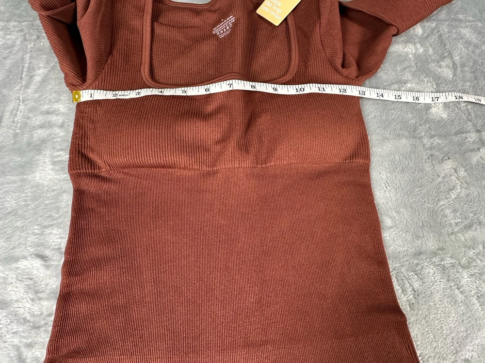 This is Popilush’s Shapewear Jumpsuit that is seamless and unique with a thumb hole in both sleeves. It has a square neckline. It is in excellent condition, new with tags, and labeled a size Large. Details and measurements can be seen in the photos.