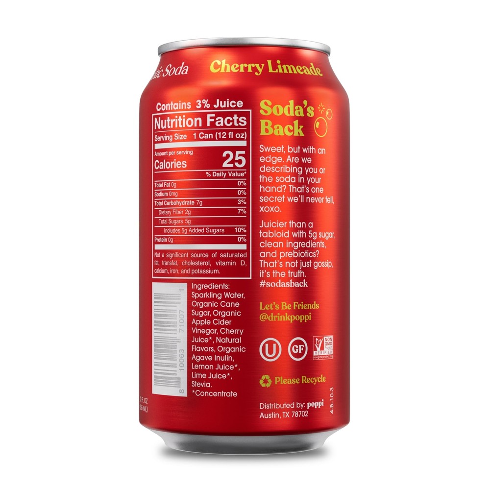 Poppi Sparkling Prebiotic Soda Beverage with Apple Cider Vinegar, Seltzer Water and Fruit Juice, Cherry Limeade Flavor, 12 oz, Pack of 12, Packaging May Vary Poppi Sparkling Prebiotic Soda Beverage with Apple Cider Vinegar, Seltzer Water and Fruit Juice, Cherry Limeade Flavor, 12 oz, Pack of 12, Packaging May Vary Free Shipping 24/7 Customer Service Premium Quality Flavors include: 12x Cherry Limeade Mouthwatering flavor and all the soda feels Contains unfiltered Apple Cider Vinegar and prebiotics from agave inulin 5g of sugar or less and 25 calories or less per can Perfect for everyday, on-the-go refreshment or as a drink mixer Great alternative to diet soda soft drinks, kombucha, juice, seltzer & flavored water, energy drink, coconut water, tonic water, sports drinks, etc Verified SHARK TANK brand Shipping Information We offer FREE shipping on all orders! We ship within three business days of payment, usually sooner. We use a selection of shipping services such as UPS, FedEx, USPS, etc. We only ship to the lower 48 states, no APO/FPO addresses or PO Boxes allowed. Return Policy You can return a product for up to 30 days from the date you purchased it. Any product you return must be in the same condition you received it and in the original packaging. Please keep the receipt. Feedback Customer satisfaction is our top priority. If you have any problem with your order, contact us immediately. We respond to all inquiries within 24 hours and will do our utmost to ensure you are fully satisfied with your shopping experience. Contact Us If you have any queries, please contact us via eBay. Our dedicated customer support team prioritizes your satisfaction and guarantees a response within 24 hours on weekdays. Discover Dobby's Deals! Thank you for choosing Dobby for your shopping needs. Explore more premium items in Dobby's Store today!