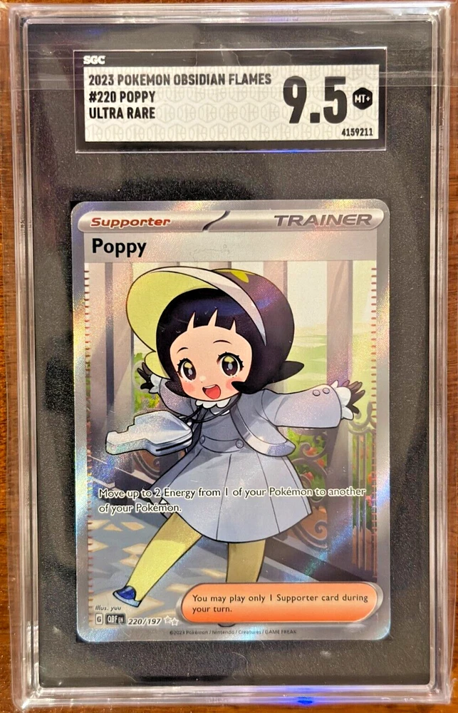 Embark on a fiery adventure with the Pokemon TCG Poppy card, a Ultra Rare gem from the Obsidian Flames set, boasting the awe-inspiring Flame creature/monster type. This card, numbered 2023, features a captivating holographic finish that's sure to dazzle collectors and players alike. Whether you're looking to enhance your gameplay or treasure a standout piece in your collection, this card fits seamlessly into any Pokemon TCG arsenal. With its vivid artwork and strategic potential, it's a must-have for enthusiasts seeking to make an impact in their next battle.