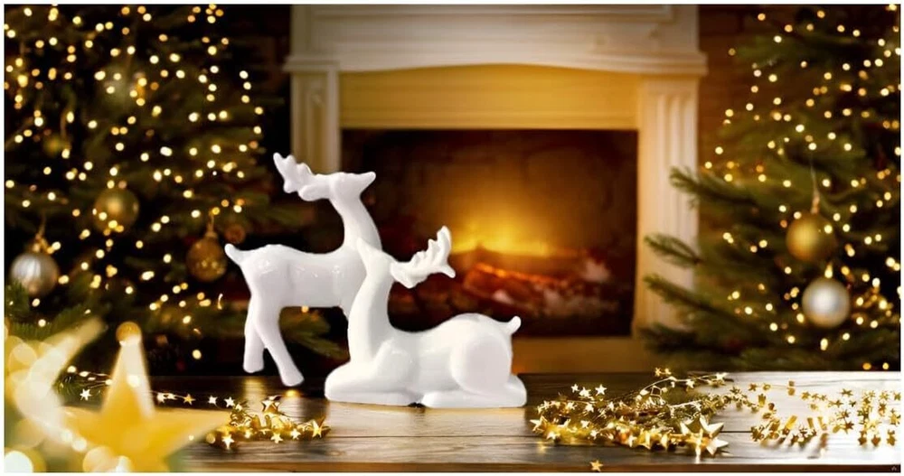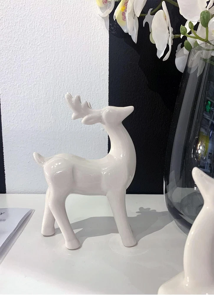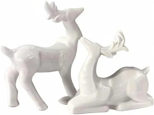 Porcelain Christmas Reindeer Figurines, Pack 2 Mini Animal Reindeer Decor Deer Statues Sculpture Tabletop Ornaments for Cabinet Mantel Shelves Fireplace Home Décor Accents Collectible Figurines Product Details Product Dimensions: 3.75 x 1.75 x 5.25 inches Item Weight: 13.7 ounces Manufacturer: KiaoTime Country of Origin: China Specific instructions for use: Christmas,Home Décor Finish types: Ceramic Number of pieces: 2 Batteries required: No Included Components: Set of 2 Pcs x Reindeer Figurine(Standing + Sitting) 【High Quality】The Tabletop Christmas Reindeer is crafted of Ceramic and with all white color which makes it beautiful and special. Delicate craftsmanship, Solid structure and high quality, eco-friendly 【Exquisite Design】Christmas Reindeer figurine, all white design with true-to-life details, appealing color, and active poses, adds peace and beauty to any setting 【BEAUTIFUL REINDEER】Add the festivities of the holidays to your home, office, classroom and more. Looking for something unique but elegant for this year’s Christmas decor? Want an item that can add a magical and traditional spirit to your decorations? This Christmas Reindeer Figurine can perfectly help you with that 【Application】Deer christmas decor suitable for indoor or outdoor decoration, like bookshelves, bedside tables, countertop, cake topper, home, office, café, nursery room, Tiered Tray and so on 【Patented products:】- Standing deer: 5.25inches Height by 3.75 inches Width. Sitting Deer: 3.5inches Height by 4.25 inches Width. The reindeer sculpture is perfect gifts for family and friends at Birthday, Christmas, and New Year. The design of this product is patented.