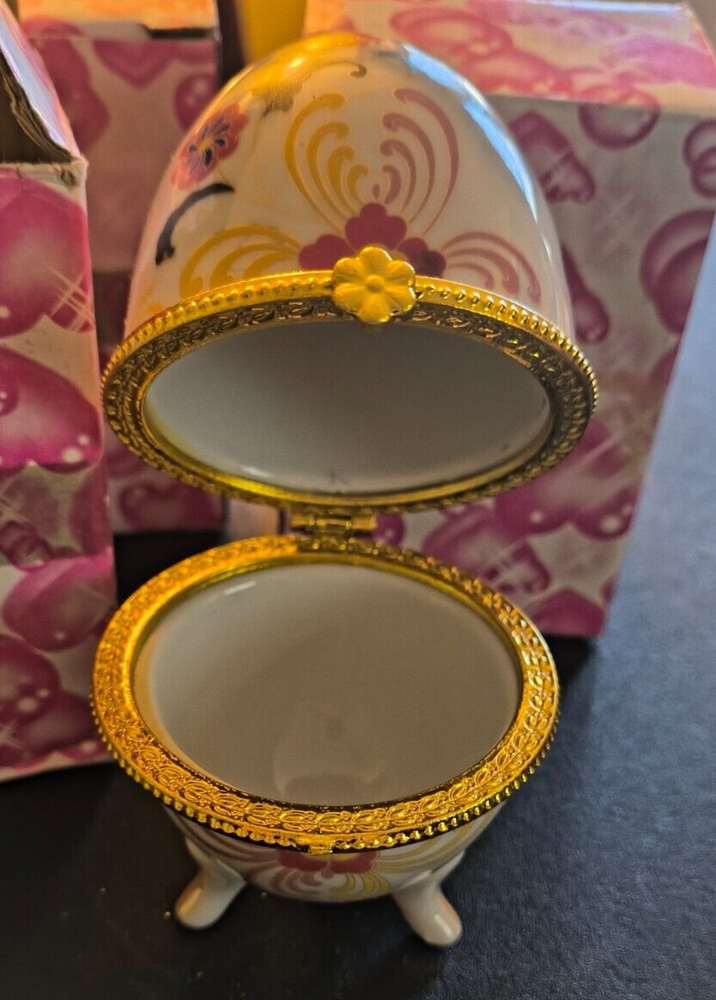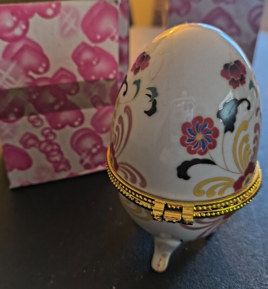 Porcelain Floral Egg Hinged Trinket Box - 4" Tall x 3" Wide - New