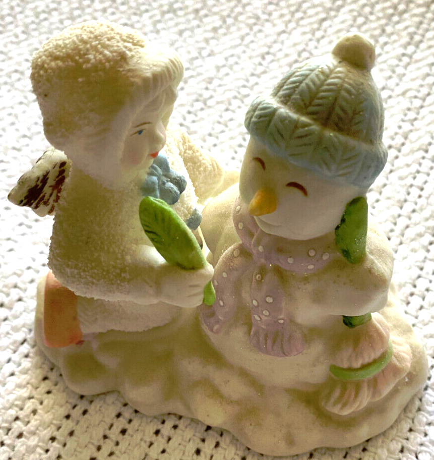 Porcelain Sky angel, girl and snowman, Winter decor, christmas decor,