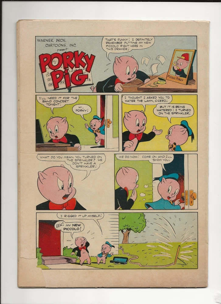 Porky Pig #34 (May 1954 , Dell). Golden Age Warner Bros. Dell Cartoon comic featuring Porky Pig. Condition Description: GOOD. Glossy cover, cover and all pages attached to both staples. Back cover bottom left corner missing piece, cover stains, cover creases & bends, cover corner & edge abrasion. Overstreet Price Guide in GD: $5 U.S. Customers: Combined shipping is available with multiple purchases at $5.50 for the 1st item won, plus .50 for each additional item won. All comics are bagged and boarded, taped between cardboard sheets and sent in a Polymailer/envelope with bubble cushioning, Priority Mail envelope, or cardboard box depending on total weight of the item(s). I promise that your items will be shipped securely wrapped and arrive to you in the condition as described. International Customers: eBay calculates the shipping fee and your item ships via eBay's International Shipping hub. All Customers : Your item(s) will be shipped within 24 hours of receiving verified payment. Tracking information will be emailed to you upon shipment. Satisfaction Guaranteed: If you are not 100% satisfied with any purchase it can be returned within 30 days for a refund of purchase price and shipping charge. Feedback: Feedback will be promptly sent to you and timely reply is appreciated. Thank you for looking at this auction and be sure to check out the other great items for sale at Favorite Comics. Good luck! (updated June 2023)