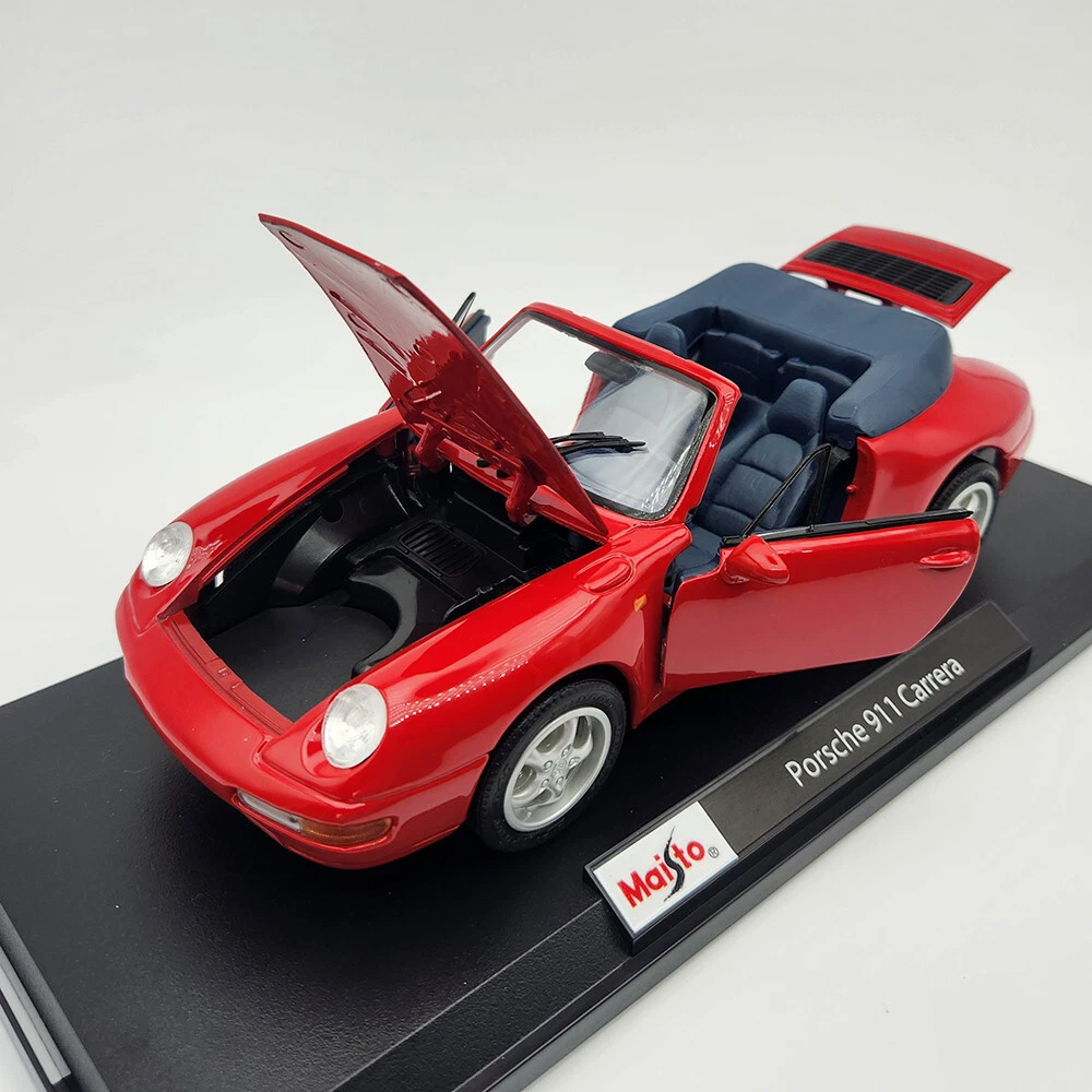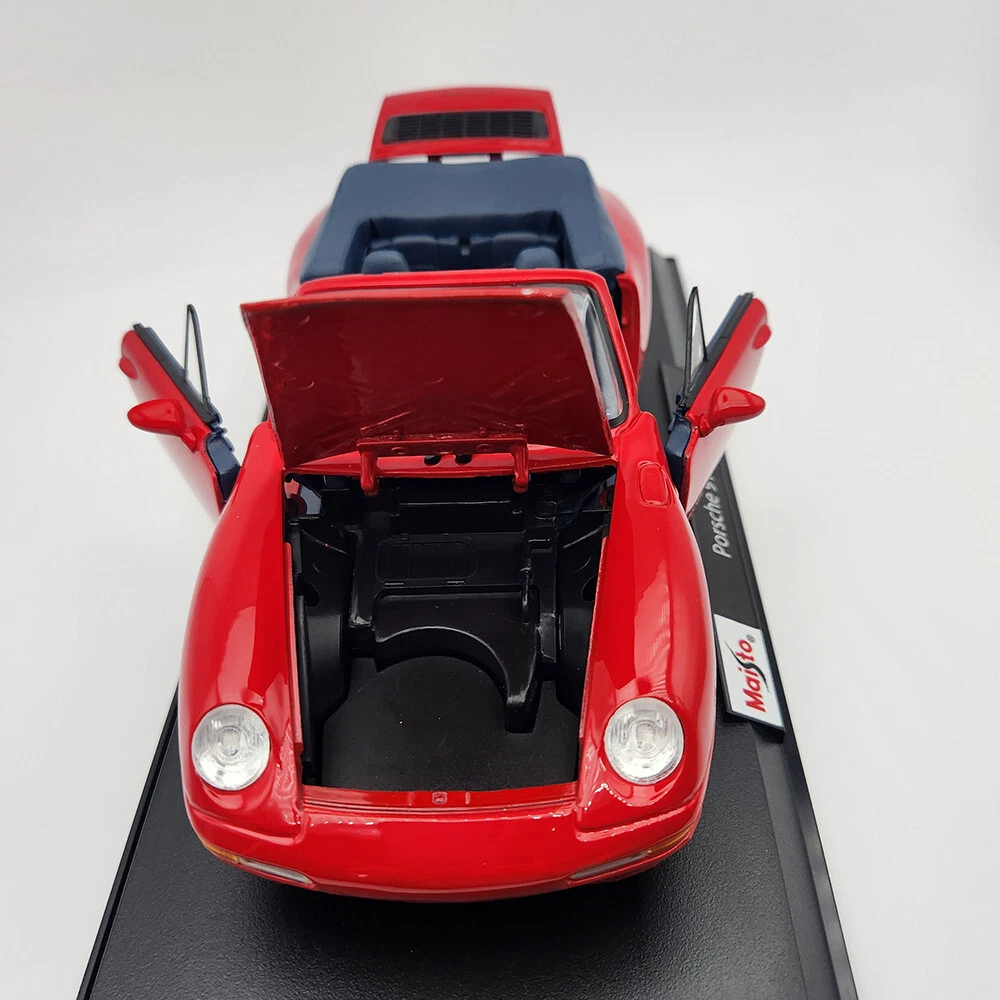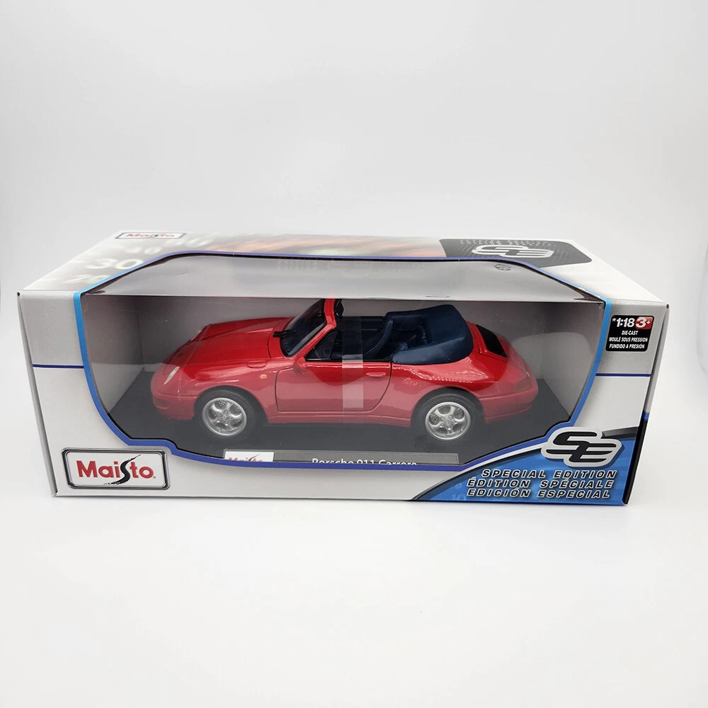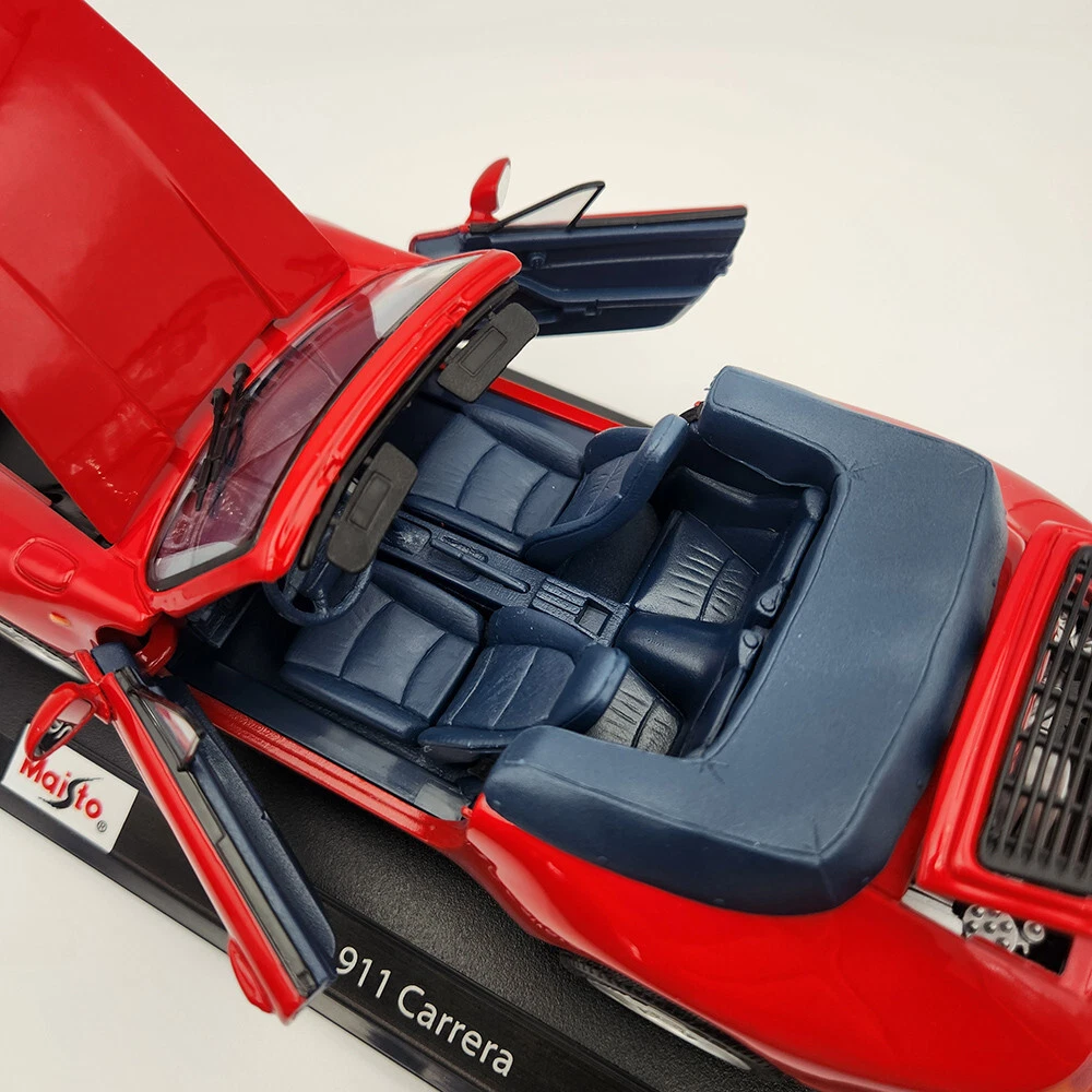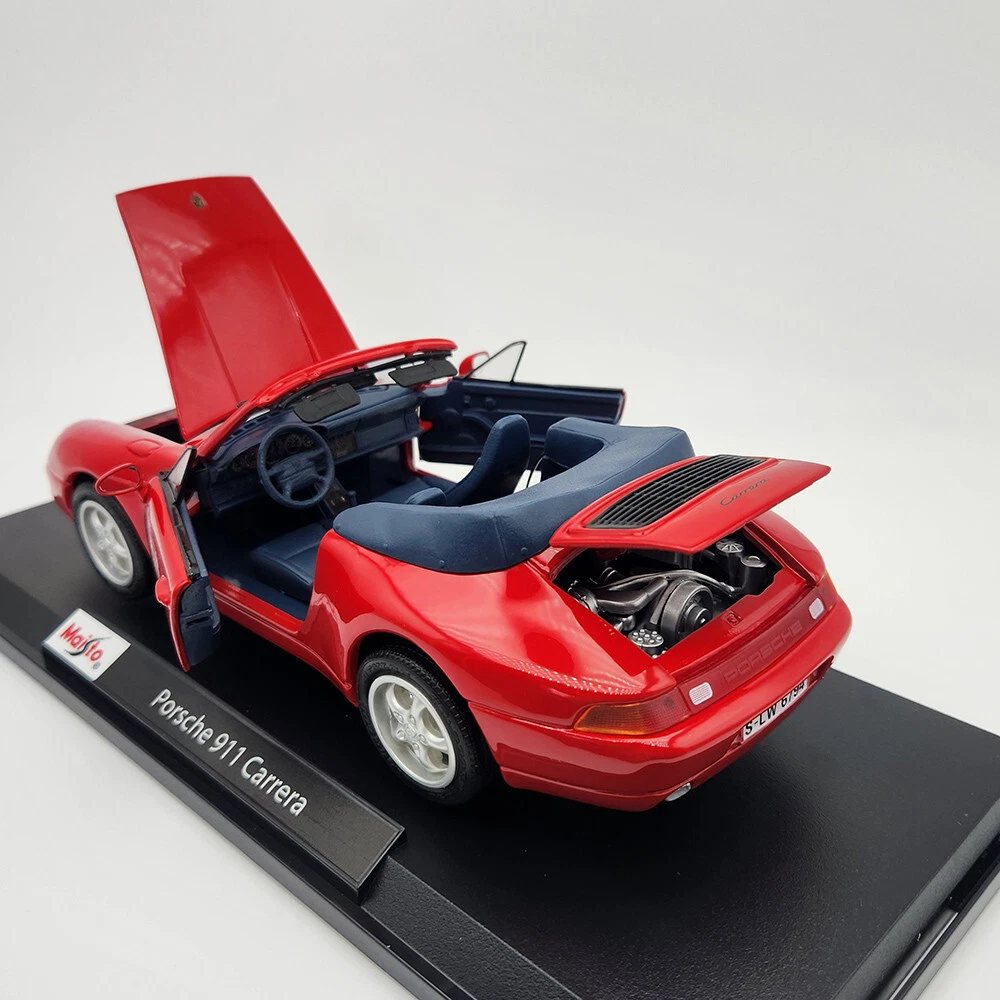 Porsche 911 Carrera Cabrio - Red - 1984 To 1989 - By Maisto - 1:18 Diecast Model With Opening Doors - Hood - Trunk. It Measures 9 Inches Or 23 CM In Length And 4 Inches Or 10 CM In Width. In Stock And Ready To Ship For Christmas.