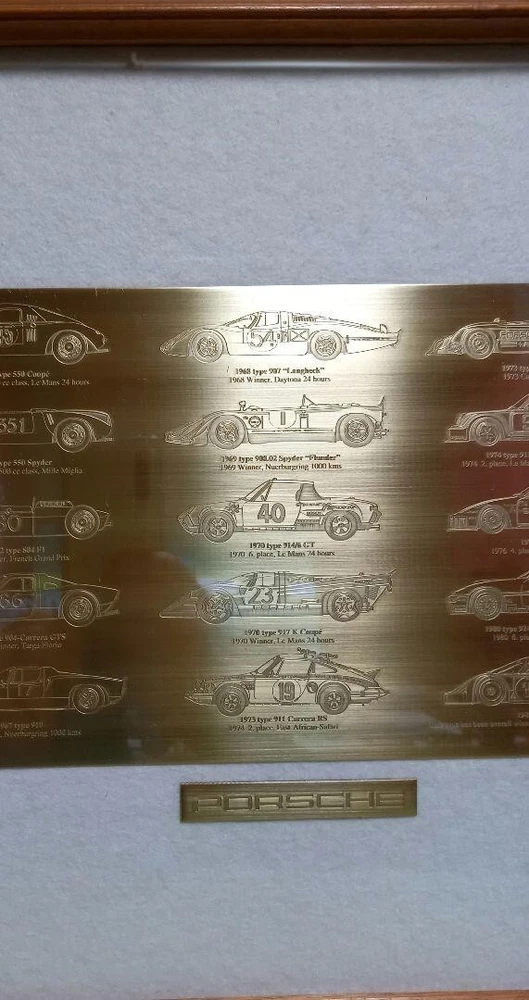 Make: Porsche Type of Advertising: Plate Seller Notes: “Unused” Theme: Automobiles Color: Gold Brand: Porsche
