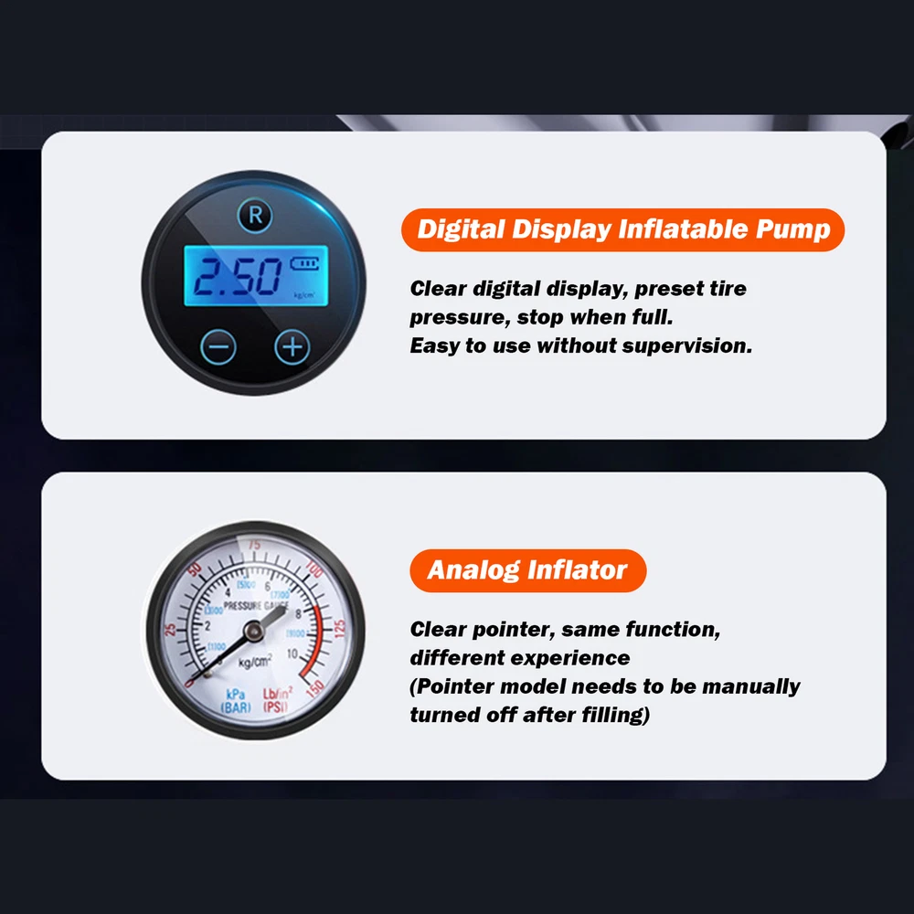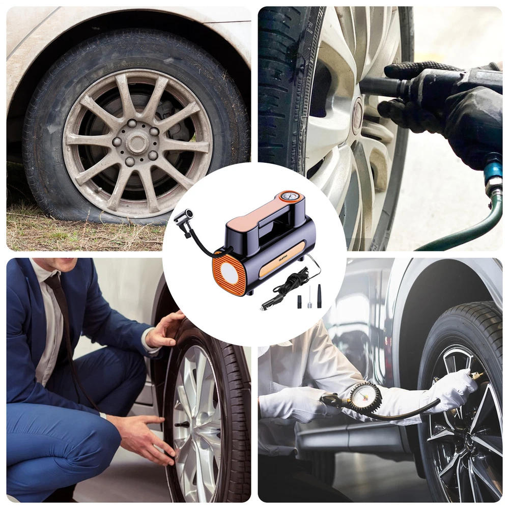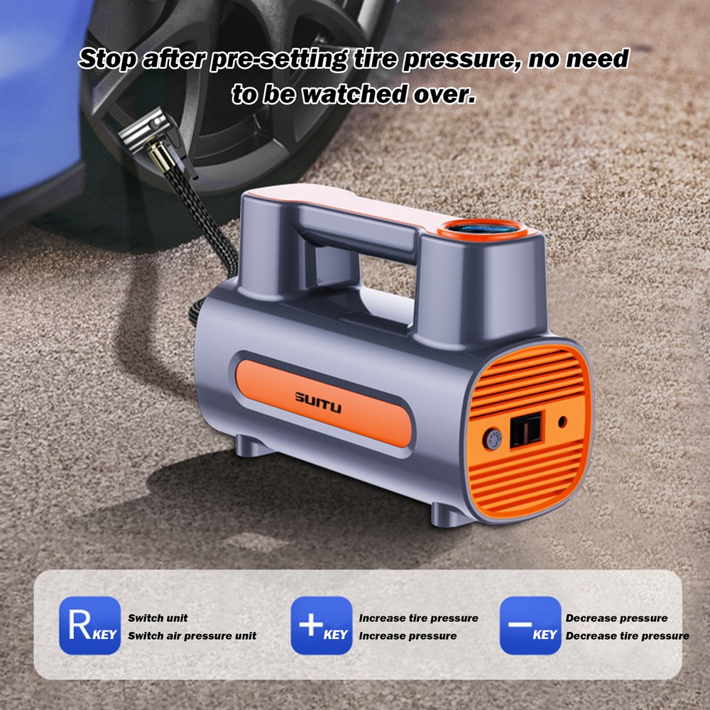 Portable Air Pump for Car Tires Air Compressor Tire Inflator Car Air 120W Product Description Bullet Points: Speedy Inflation: Our car tire inflator takes only 25 seconds to inflate your tires, ensuring speedy recovery during routine maintenance or sudden emergencies. Drive with confidence and convenience knowing you're often prepared for the unexpected. Enhanced User Convenience: With a bright LED light, this car tire inflator provides clear visibility to ensure user safety and convenience during inflation or emergencies at night or in dark environments. Powerful Temperature Control: With advanced temperature control technology, this car tire inflator can automatically adjust the temperature to prevent overheating and ensure safety and durability. Preset Pressure: Our Car Tire Inflator ensures accurate and safe inflation by allowing you to preset the tire pressure value. With the device automatically reaching and maintaining the desired pressure, simplifying operation has never been easier. Efficient Operation: Achieve a smooth and safe inflation process with our car tire inflator's auto-stop feature, which prevents over-inflation and tire damage, providing a hassle-free user experience. Our Portable Air Compressor provides quick inflation with advanced temperature control technology and a preset tire pressure feature. Equipped with a bright LED light, you can inflate your tires anytime, anywhere. Experience an efficient and safe user experience with our reliable Tire Inflator. Specification: Product name: Car Air Pump Product size: about 21x14x9cm/8.27x5.51x3.54 inches Power: 120W Air flow: 35L/min Replenishing time: about 25 seconds Applicable scenarios: balls, bicycles, motorcycles, car tires, etc. type: A-lined pointer model B-with wired digital display model C-wireless pointer model D-wireless digital display model Instructions for use: Wireless Model 1. Check whether the charge is sufficient 2. Turn on the switch 3. When the rechargeable battery USB displays red, it means it is charging normally, and green means it is fully charged. 4. Charging time is about 3-4 hours to fully charge, and it can be used continuously for about 20-30 minutes when fully charged. Wired Model 1. Start the car 2. Directly plug into the DC12V lighter power supply in the car 3. Turn on the product switch to inflate your car tires Precautions: 1. Do not expose it to direct sunlight or use it in places with high temperature and high pressure. 2. Do not use highly volatile detergents to wipe the body. 3. This product is a vehicle tool. It is prohibited for children to use it alone to avoid danger. 4. Under normal conditions, it can usually be used for half an hour and has no impact on your car. 5. After using this product, please turn off the switch. 6. In order to make the air pump more effective, please pause for about 10 minutes before turning it on. 7. When repairing this product, you should follow the instructions. 8. This product is not a toy. Please do not let children play alone to avoid danger. Packing List: Wired version: Host x1 Air nozzle x1 Chinese and English manual x1 Chinese and English color box x1 OR Wireless model: Host x1 Air nozzle x1 Chinese and English manual x1 USB charging cable x1 Chinese and English color box x1 Note: Due to different lighting and screen settings, the item color may be slightly different from the picture. Due to different manual measurements, please allow a 1-2cm difference in size. Payment 1.PayPal is a preferred Payment method. 2.You can make a Credit payment via Paypal.Paypal will let you use MasterCard,Visa to pay. 3.Payment should be completed within 3 days after auction closed, or unpaid dispute will be filed for an closing auction.An unpaid case will be filled after 4 days. Delivery details 1. We ship to many countries. 2. Delivery Time: Ship from China via Speedpak to US (takes 8-12 days) Ship from China via others shipping method to other countries (takes 15-60 days) 3. If you want to choose another address, please leave us a message on ebay.Please check your shipping address carefully before checkout,it can't be changed if order completed. Seriously promise:Refund or resend will be offered if item still not arrive in 7-10 business days. Just send us an email,we will give you a satisfied solution as soon as possible. Return policy 1.All item comes with Basic 3 Months Sellers Warranty, if item defective in 3 months,We will offer replacement without extra charger (including shipping fee) After we receive the defective item. If item Defective after 3 Month, Buyers can still send it back, We will contact suppliers or Manufactory for Warranty. Buyers Might Need pay the Shipping fee For resend the replaced item. 2.If item DOA(Dead of Arrival), Buyers can return it in 30 Days, we will replace it with new item after we receive DOA item. Please Contact us Before you sent the item back. 3.All item can be returned for exchange only. The buyer has responsibility for all return shipping including DOA or defective return. About Feedback When you receive the item and satisfied with the product, please leave positive feedback and 5 scores DSR. We will leave a 5 Scores DSR feedback for you. If, for any reason you are not satisfied with your purchase, please contact via Ebay Message and we will do our best to resolve it. Please don't leave neutral or negative feedback without any communition with .