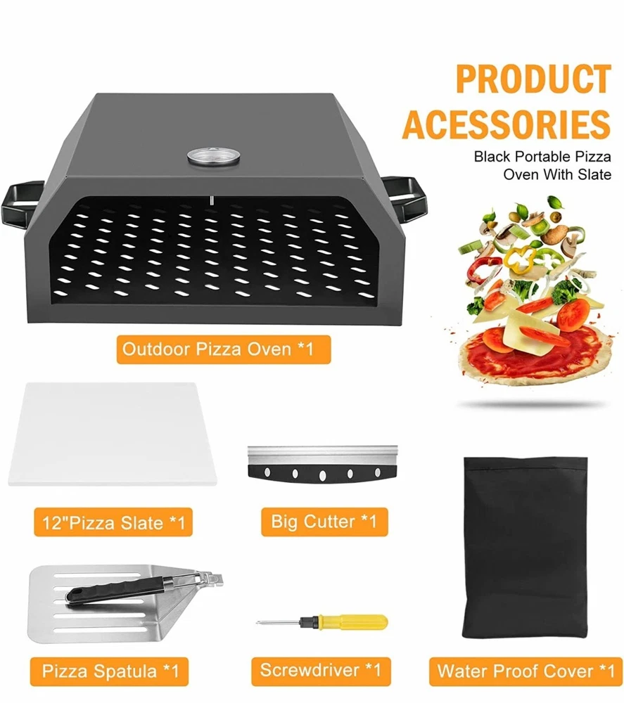 - Brand New - Never Used - Questions: Feel free to ask any Questions - BOX: Never Opened - DESCRIPTION: • Efficient: Pizza Oven Heats up quickly, Simply place on a grill and bake gourmet pizza in 2-4 minutes, saving you time and effort. * Portable & lightweight: Weighing 15.9 pounds and double handle design makes it easy to move the pizza oven. And the handle has been upgraded to the metal material, which will not burn out * Real-time Temperature: An integrated thermometer that reads up to easily track the temperature for baking pizza more conveniently. * Multipurpose: Pizza oven outdoor is suitable for gas, wood-fired, charcoal, pellet, which is not only a professional oven for baking pizza, but also for toasting bread, heating, and grilling steakhouse, meat, vegetables, etc. * Oven Set: Our pizza oven set includes an outdoor pizza oven, Square Pizza Stone dimension(12''L x 12''W), Pizza Cutter, Pizza spatula, Dust Bag, Installation Accessories, Installation Instructions to meet your different needs. - OFFERS: Reasonable offers are considered, LOWBALLERS, Best price and Lowest askers will be ignored - all sales final/no refunds/ no exchanges/ no returns -Pizza Oven for Grill Outdoor, Portable Pizza Oven with Handle for Wood Fire and Propane Gas in BBQ Outside,12‘’