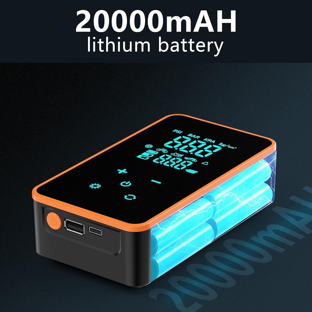 Product Description Tire Inflator Portable Air Compressor, Portable Air Pump For Car Tires Tire Inflator 150 Psi150psi & 20000mah Fast Inflation For Cars, Bikes & Motorcycle Tires, Balls 🚴🍀Portable Air Compressor: The upgraded touch screen air pump features a powerful 20000mAh battery. It can run continuously for up to 1-2 hours and takes about 3-5 hours to fully charge. Cordless and convenient, no need for a charging cable or cigarette lighter connection. 🚴🍀Air Compressor for Tires: Equipped with 4 preset modes for bicycles, motorcycles, cars, and balls. It automatically shuts off when the preset pressure is reached, making it easy to use. You can also set your own pressure up to 150PSI. One button operation to switch between pressure units. 🚴🍀Air Compressor: Features a high-efficiency motor with over 25000 RPM, providing airflow of 36L/Min. It can inflate a small tire (25-36PSI) in just 1-2 minute. 🚴🍀Tire Inflator: The large LCD touch screen includes a pressure gauge function, displaying both preset and real-time pressure values with ±1.5PSI accuracy. Features LED, SOS, and flashing lights for visibility during nighttime inflation. 🚴🍀Tire Inflator Portable Air Compressor: This mini air pump is conveniently packed with a storage bag in a compact box. It features a USB-C input and USB-A output port, serving as a portable power bank for electronic devices. About Us We are a reputable seller with many years of experience selling on eBay. Our goal is to provide high-quality products and excellent customer service. Shipping Items will be shipped within 1-3 business days when we received payment. (Orders are not processed on weekends & holidays) Tracking information will be sent once item is shipped. Delivery time depends on destination and other factors Item is shipped to ebay address. Leaving correct address can minimize delay. For international shipping and shipping to Guam, Hawaii and Alaska, Please contact us before placing the order. International buyers please note: Import duties, taxes and charges are not included in the item price or shipping charges. These charges are buyer’s responsibility. We will try our best to reduce the risk of the custom duties. Local pick-up is unavailable at the moment. Contact Us We reply any email messages within 1 business / working days(off-duty at weekend). If you do not get a response from us, then please check your junk or spam mailbox. Our Business hours: Mon-Fri 9:00-18:00, UTC/GMT +8 hours. Please contact us either by clicking "contact seller" in the "purchase history" section or simply click "ask a question" at the bottom of this page. If you are unsatisfied with our item or service, please contact us before leaving any feedback. We are committed to resolve all issues in a friendly and satisfactory manner.