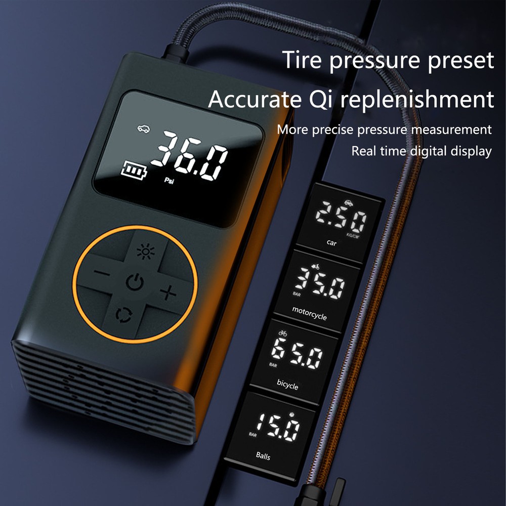 This mini air pump is a lifesaver for quick tire inflation! It's compact yet powerful, reaching 150 PSI in just 8 minutes. The built-in battery lasts long enough for multiple tires, and the included nozzles make it versatile. Perfect for emergencies or regular top-ups—lightweight, easy to use, and reliable. A must-have for every car owner!