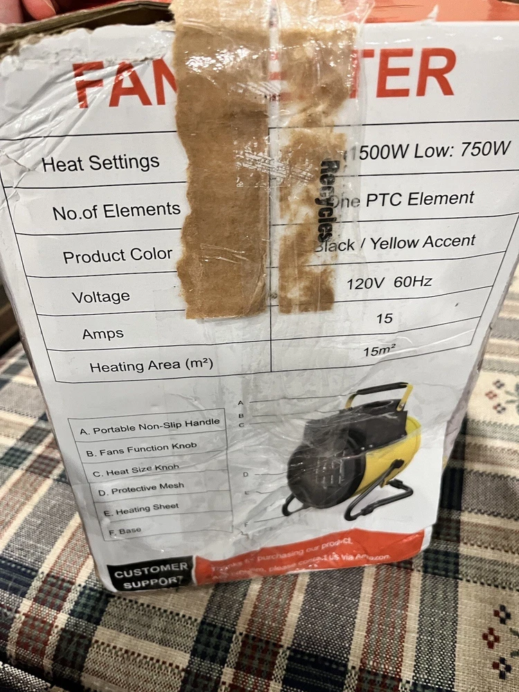 Portable 1500W Electric Space Heater Fan Indoor Use/Home Low Noise Safety Shut
