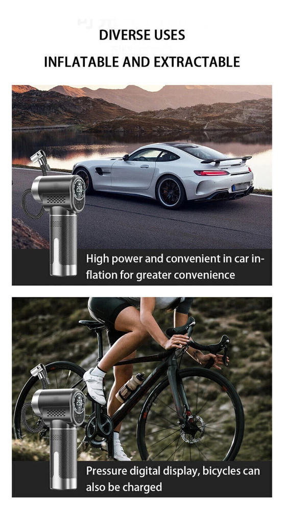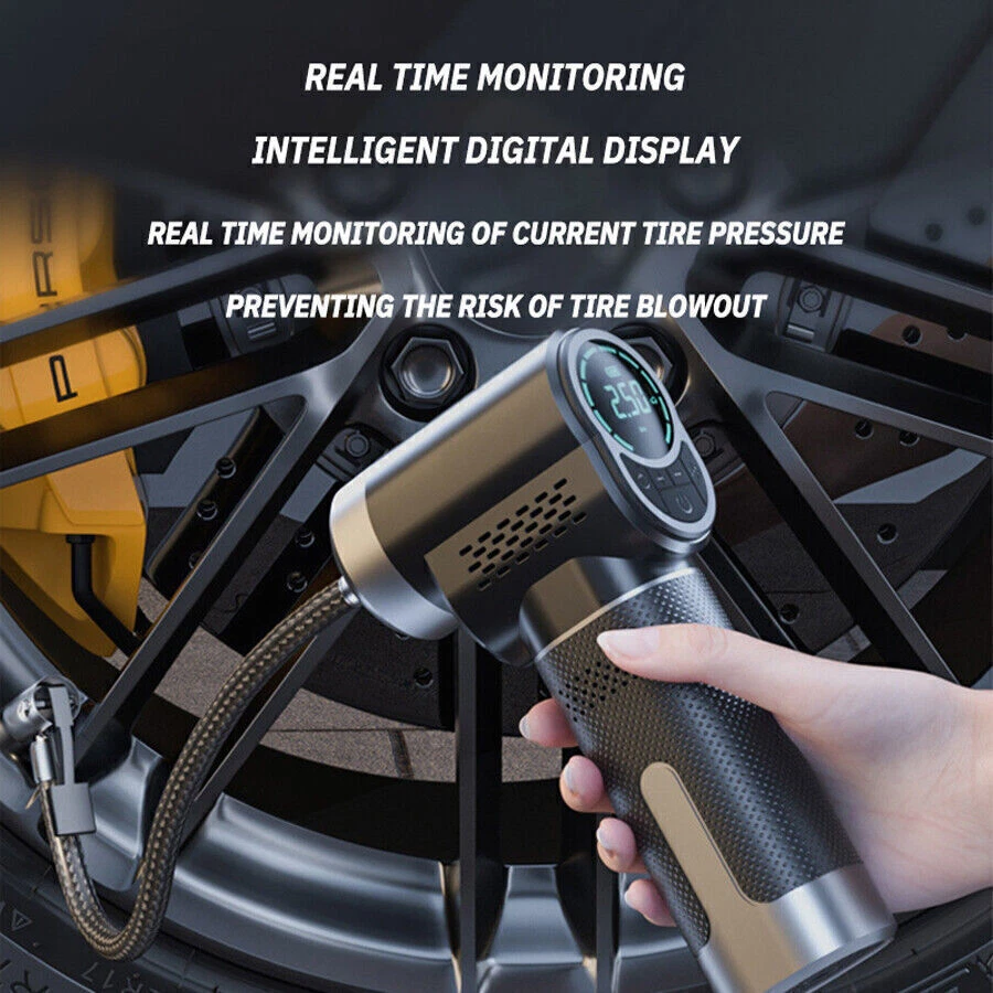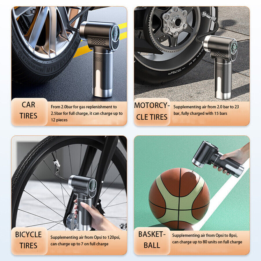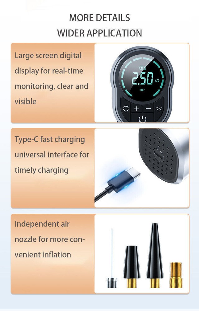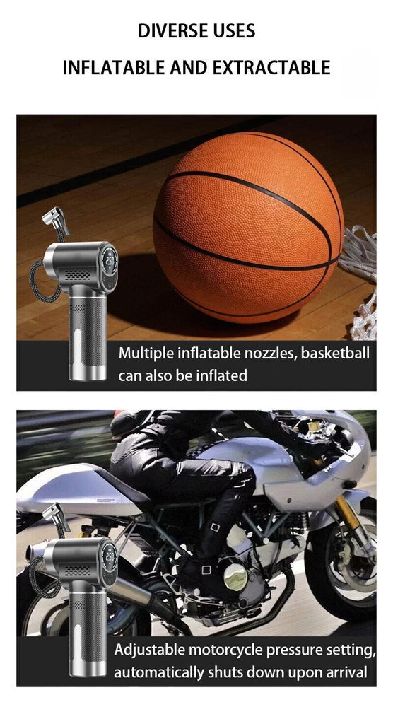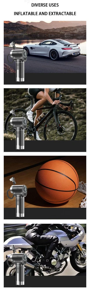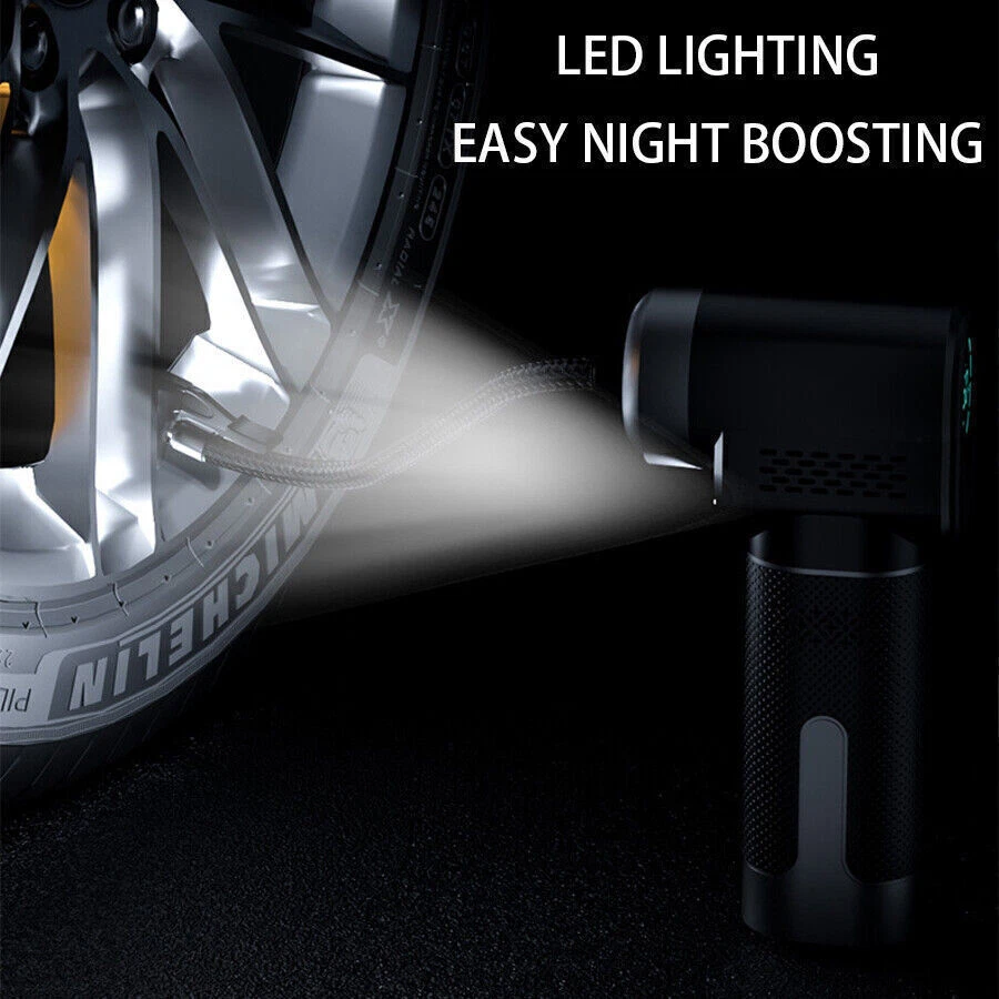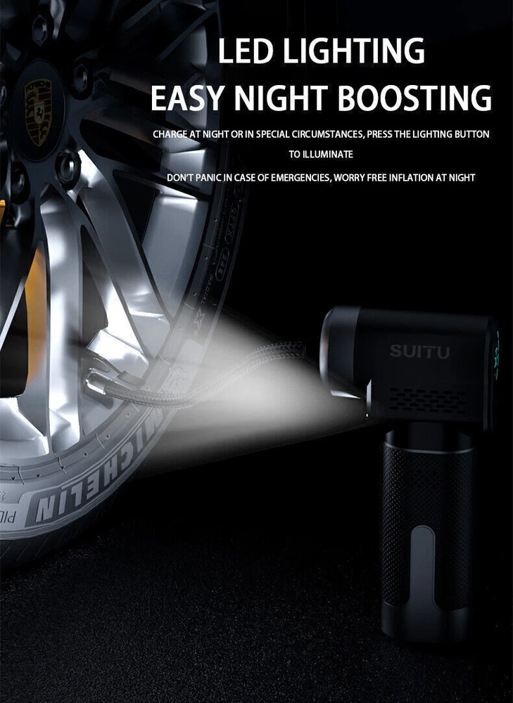 This portable tire inflator is a game-changer! Super compact yet powerful, it pumps air fast with 30L/min flow. The ABS build feels sturdy, and the built-in light is super handy for nighttime emergencies. Comes with all the nozzles you need for cars, bikes, and more. Charges quickly via 12V, super easy to use with clear pressure readings. At just 400g, it's light enough to keep in your trunk without taking space. Perfect for quick tire top-ups or roadside emergencies - no more struggling with manual pumps!