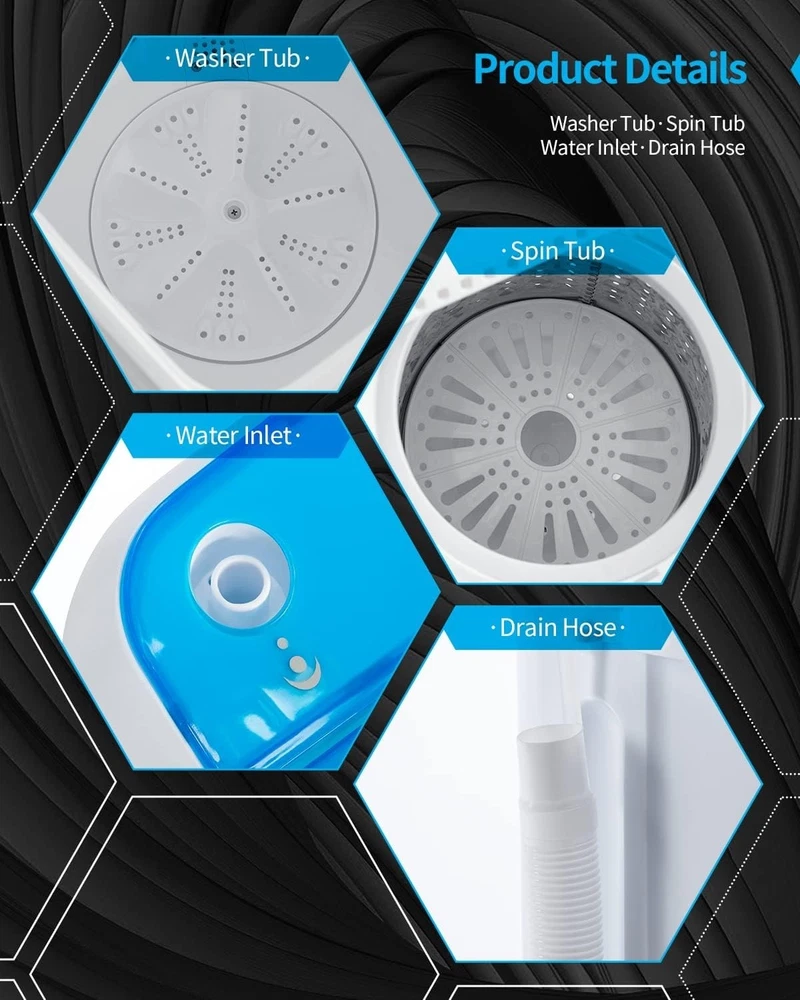 Portable 16.5LBS Mini Washer & Dryer - Compact Twin Tub Laundry Machine ‹ › ‹ › ‹ › ‹ › ‹ › ‹ › ‹ › ‹ › ‹ › ‹ › ‹ › Portable 16.5LBS Mini Washer & Dryer - Compact Twin Tub Laundry Machine Features: Large Capacity: Despite its compact size, this mini washing machine boasts an impressive capacity of 16.5lbs (11lbs for washing and 5.5lbs for spin cycle), making it perfect for your laundry needs. Twin Tub Design: With dual function capability, wash and spin dry simultaneously, saving you precious time on laundry days. Simple Operation: The intuitive three control switches make it easy to use. Wash timing, spin timing, and drain options are all straightforward, letting you focus on what matters. Portable & Space-saving: Measuring 21.2*13.8*25.2 inches, this mini washer can fit seamlessly into your home, be taken out for laundry, and easily stored away afterward. Ideal for travel and small living conditions. Strong Momentum: Powered by a dual motor system, enjoy efficient washing and drying with robust performance, designed from durable plastic for longevity. Safety First: Operating at a power supply of 110V/60Hz, with total power of 360W (wash:240W/dry:120W), please ensure hands are dry when handling the plug. Benefits: Efficient laundry solution for limited spaces such as apartments, dorms, and camping trips. Allows simultaneous washing and drying to streamline your laundry process. User-friendly design ensures a hassle-free experience. Ideal for travel, offering compactness without compromising on washing power. Durable materials ensure a lasting investment for everyday laundry tasks. Why Choose Our Mini Washer & Dryer? Say goodbye to long hours spent waiting for laundry to finish. Our Portable 16.5LBS Mini Washer & Dryer is your perfect partner in achieving clean clothes with minimal effort. The compact design is perfect for your busy lifestyle, whether at home or on the go. Its dual-functionality makes laundry days a breeze, allowing you to multi-task effectively. Choose convenience, efficiency, and quality by investing in this essential laundry companion. Don’t let laundry be an inconvenience; order your Portable Mini Washer & Dryer today! Shipping Free & Fast Shipping - We offer free shipping to most of the USA with a normal delivery time of 3-7 days. However, due to the current situation, additional delivery time (up to 3 weeks) may be required for some items. Alternative Carriers - We may use alternative carriers (e.g. USPS, FedEx, UPS, etc.) to ensure your package arrives safely and on time. Due to the use of multiple carriers, we are unable to provide a tracking number automatically. Handling Time - Orders are processed and shipped within 1-2 business days of receiving cleared payment. Shipping Restrictions - Shipping to Alaska, Hawaii, Puerto Rico, Guam, and other US territories may incur shipping charges or delivery restrictions. Please contact us before ordering, or your order can be refunded/cancelled. State Restrictions - There may be restrictions based on your state of purchase. For example, certain items may not be shipped to California due to state regulations. Contact for Tracking Updates - If you require tracking updates or have any concerns about the delivery of your order, please feel free to contact us, and we will be happy to assist you. Return 30-Day Hassle-Free Returns - We want you to be completely satisfied with your purchase. If you are not, you can return the item within 30 days of receiving it for a full refund or exchange. Easy Return Process - To start a return, simply contact us and we will provide you with a prepaid return shipping label and detailed instructions. Restocking Fee - There are no restocking fees for returns. However, the buyer is responsible for return shipping costs if the return is not due to a seller's error. Refund Processing Time - Refunds will be processed within 5 business days of receiving the returned item in its condition. Payment We accept all major credit cards, PayPal, and Apple Pay for your convenience. Your payment information is secure and encrypted to ensure a safe and seamless transaction. Please complete your payment within 3 days of purchase to avoid any delays in shipping. Feedback Your feedback is extremely important to us. We strive to provide the best products and customer service possible. If you are satisfied with your purchase, please take a moment to leave us a positive review. If you have any concerns or issues with your order, please contact us before leaving negative feedback. We are committed to resolving any problems and ensuring your satisfaction. Contact Us If you have any questions or concerns, please feel free to out to our customer support team. You can contact us through the eBay messaging system. We are available Monday to Friday, 9:00 am to 5:00 pm EST, and we will do our best to respond to your inquiry within 24 hours. Buy it now and enjoy a pleasant shopping experience! Unit Quantity: 16.5 LBS Wash Programs: Wash,Dry Features: Portable,Strong Momentum,Simple Operation,Compact Design Model: Portable Washing Machine Installation: Portable Load Type: Top-Loading Size Category: Compact/Mini Color: White Power Source: Electric Washer Capacity: 16.5 lbs Type: Twin Tub Washing Machine Item Depth: 13.8 in Power: 360 W