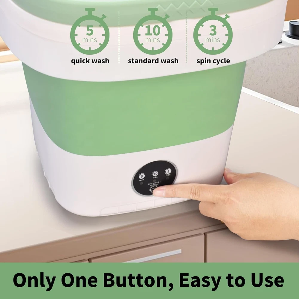 This mini washer is a game-changer for small spaces! Super compact yet powerful, it cleans clothes thoroughly and even spins them dry. Perfect for apartments, dorms, or travel—no more laundry room trips. The materials feel safe and durable, and it folds away easily. Love how convenient it is for quick loads like underwear and baby clothes. Highly recommend for anyone with limited space!