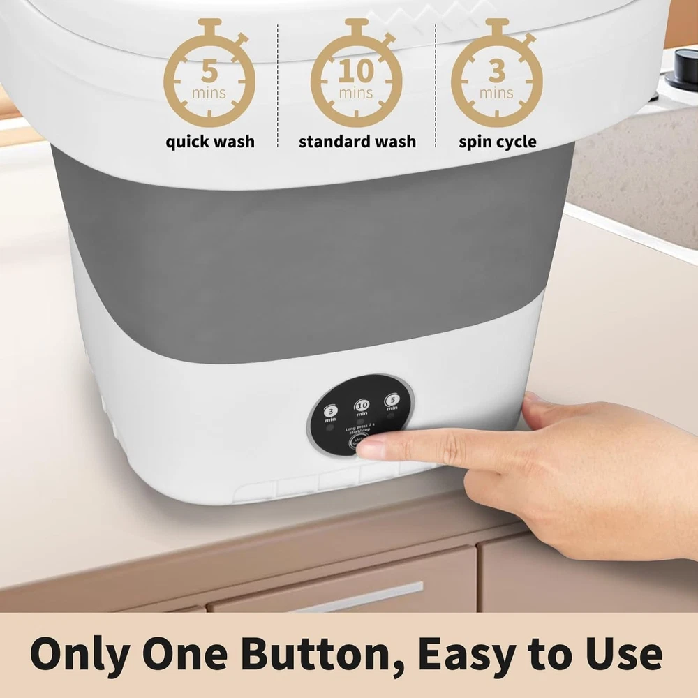 This mini washer is a game-changer for small spaces and travel! Its foldable design makes it super portable, and the 16L capacity fits more than expected. The three cleaning modes tackle different stains effortlessly, and it’s surprisingly powerful for its size. Perfect for dorms, RVs, or quick laundry refreshes—no more lugging clothes to a laundromat! Highly recommend for anyone needing a compact yet efficient washing solution.