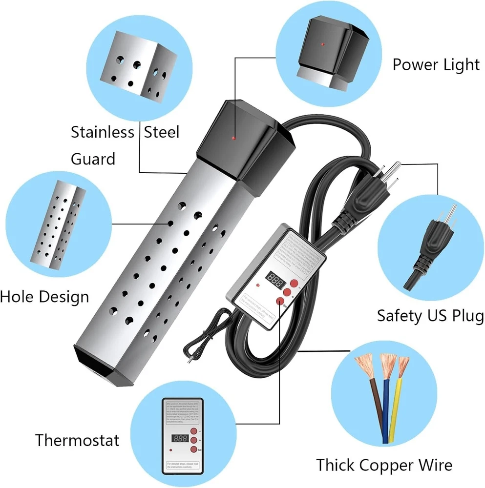 Portable 2000W Pool Heater with Digital Thermostat & Rust-Proof Stainless Guard ‹ › ‹ › ‹ › ‹ › ‹ › ‹ › ‹ › ‹ › ‹ › ‹ › Portable 2000W Pool Heater Experience the serenity of perfectly warm water with our powerful Portable 2000W Pool Heater, designed to transform your swimming experience in inflatable and above-ground pools. Features: POWERFUL 2000W HEATING: Efficiently heats water quickly, allowing you to dive into warm water in minutes. ACCURATE TEMPERATURE CONTROL: Equipped with a built-in LCD thermometer for precise temperature monitoring. Easily set your desired temperature and time, with automatic shut-off upon attainment. VERSATILE IMMERSION HEATER: The portable, submersible design makes it a versatile choice for bathtubs, plastic and wooden buckets, basins, or inflatable pools. STURDY AND SAFE: UL Certified and features a 304 stainless guard that resists rust and corrosion, ensuring reliability during repeated use. FAST HEATING FOR LARGE VOLUMES: Rapidly heats 5-20 gallons of water in minutes, making it the perfect companion for quick warm-ups. Remember, the heater must be fully immersed in water while in use. Benefits: Brings instant warmth to your swimming experience. Control your heating preferences effortlessly with precision. Adaptable for various settings — enjoy warm water baths or pool swims. Durable construction ensures long-lasting use and peace of mind. Ideal for spontaneous get-togethers or peaceful evenings at home. Why choose our Portable 2000W Pool Heater? Don’t let chilly water keep you from enjoying your pool! Our Portable 2000W Pool Heater combines efficiency and safety, ensuring an unforgettable experience. With its robust heating power and user-friendly design, it puts you in control of your comfort. Indulge in smooth, warm waters regardless of the season — order your Portable 2000W Pool Heater today and enhance your hydration ritual! Shipping Free & Fast Shipping - We offer free shipping to most of the USA with a normal delivery time of 3-7 days. However, due to the current situation, additional delivery time (up to 3 weeks) may be required for some items. Alternative Carriers - We may use alternative carriers (e.g. USPS, FedEx, UPS, etc.) to ensure your package arrives safely and on time. Due to the use of multiple carriers, we are unable to provide a tracking number automatically. Handling Time - Orders are processed and shipped within 1-2 business days of receiving cleared payment. Shipping Restrictions - Shipping to Alaska, Hawaii, Puerto Rico, Guam, and other US territories may incur shipping charges or delivery restrictions. Please contact us before ordering, or your order can be refunded/cancelled. State Restrictions - There may be restrictions based on your state of purchase. For example, certain items may not be shipped to California due to state regulations. Contact for Tracking Updates - If you require tracking updates or have any concerns about the delivery of your order, please feel free to contact us, and we will be happy to assist you. Return Please see our eBay Return Policy. Thank you. Payment We accept all major credit cards, PayPal, and Apple Pay for your convenience. Your payment information is secure and encrypted to ensure a safe and seamless transaction. Please complete your payment within 3 days of purchase to avoid any delays in shipping. Feedback Your feedback is extremely important to us. We strive to provide the best products and customer service possible. If you are satisfied with your purchase, please take a moment to leave us a positive review. If you have any concerns or issues with your order, please contact us before leaving negative feedback. We are committed to resolving any problems and ensuring your satisfaction. Contact Us If you have any questions or concerns, please feel free to reach out to our customer support team. You can contact us through the eBay messaging system. We are available Monday to Friday, 9:00 am to 5:00 pm EST, and we will do our best to respond to your inquiry within 24 hours. Thank you for supporting our small family business! UPC: Not Set Unit Quantity: 1 Power Source: Electric Suitable For: Above Ground Pools,Inflatable & Kid Pools,Bathtubs,Plastic Buckets,Wood Buckets,Basins Features: Auto Shut-off,Digital Display,Portable,Temperature Control,Submersible Design,Safety Guard Brand: Unbranded Type: Immersion Water Heater BTUh Heating Rating: 100 Model: Not Set Voltage: 120 V Heating System: Instantaneous (Tankless) Amperage: 20 A Water Temperature Range: Not Specified MPN: Not Set Power: 2001-2500 W Tank Capacity: Not Set Manufacturer: Not Set Water Connection Location: Not Set Country/Region of Manufacture: Not Set Item Width: Not Set Item Weight: 2 lb Manufacturer Warranty: Not Set Item Height: Not Set Item Length: 10.2 Inches Unit Type: lb