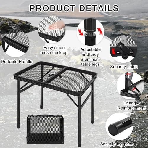 Return Policy Fast Delivery Trusted seller Grill Table Camping Table Portable Folding Table,Height Adjustable Collapsible with Mesh Desktop,Lightweight Metal Table for Camp, BBQ, Picnic, RV, Outdoor Cooking, Travel Product Description 【Adjustable Camping Table】In addition to being foldable table, our camping grill tables have an adjustable height from 10.7'' to 22.5'' inches.Whether you are sitting or standing, for adults or children,this camping table can perfectly match and meet your various needs in any occasion. 's folding table is wholeheartedly considerate of you. 【Portable Grill Table】Our grill table is crafted from aluminum which makes the camping table very durable and weighs only 6 pounds, ensuring our portable table is easy to carry and stored for campers and backpackers on the move. So you can take our portable folding table for camping, picnics,barbecue or outdoor events everyw. 【Folding Table for Safety】 's folding camping table always puts your and your family's safety first. The mesh tabletop design prevents your camping essentials from slipping, and the security latch design also makes our metal table more stable, preventing harm to your children. 's outdoor table design will do our best to protect our customers. 【Versatile Portable Table】 Our fold up tables are not only camping accessories but also suitable for different application scenarios. You can treat it as a grill table, picnic table, craft table, card table, RV table, or even a bed desk to meet various needs and environments. It can be seen from this that our camping tables that fold up lightweight are very convenient to use. 【Customer Service】We feel confident that our folding camping table is sturdy and durable. We can the quality of each portable table. If you have any questions, please contact our customer service, and we will reply to you within 24 hours. The customer service team will be committed to providing you with excellent and prompt services. Shipping Returns Payment Shipping Shipping is FREE to all addresses other than APO/PO boxes in the lower 48 states. All our stock ships from US-based warehouses. Shipped via USPS or UPS (depending on location and package weight) Unless stated otherwise, all orders will ship within 24-72 hours of your payment being processed. Check our feedback to see the great reviews of FAST shipping we offer. Returns Seller does not accept returns Payment We currently accept payment via eBay managed payments only. Once payment is cleared, we will dispatch your shipment within 1-3 business days. Please refer to the "Shipping" tab for more information regarding shipping speed to your destination.