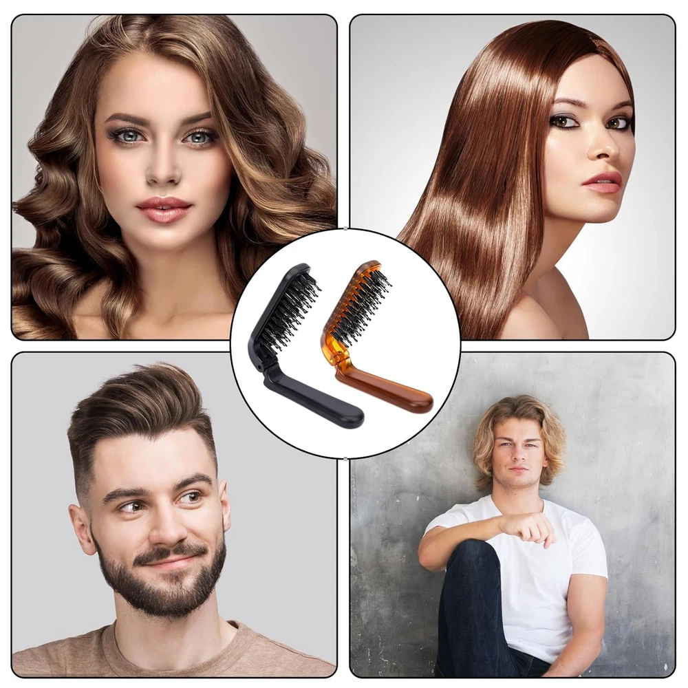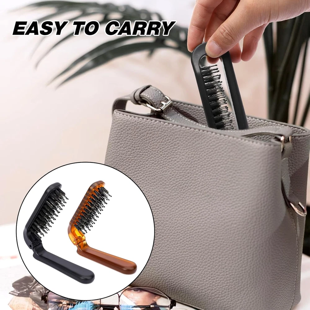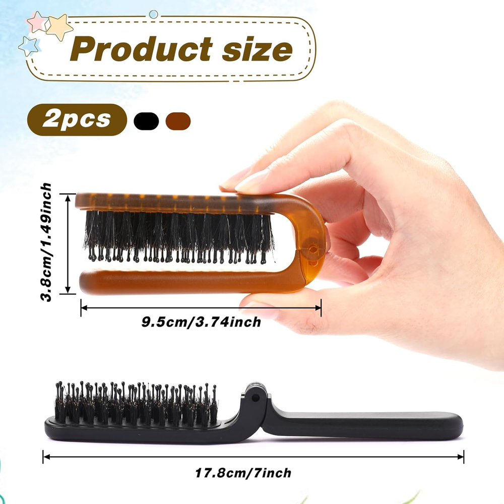 Portable 2-Pack Mini Travel Folding Boar Bristle Hair Brush