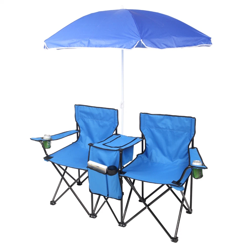 Introductions: Outdoor activity is full of interest. However, sun block is also important for us. Here comes this Portable Outdoor 2-Seat Folding Chair with Removable Sun Umbrella, with which you will be well protected from scorching sunlight. This chair is in foldable design, with 2 available seats. Made with premium steel tube and oxford materials, this chair is of great strength and durability. It is composed of a removable umbrella, convenient to use. Quite ideal for fishing or sunbathing, it is worth having! Features: 1. New and in a good condition 2. Top-grade steel tube and oxford materials ensure its good durability and quality 3. Folding style, with 2 seats when it unfolds 4. The built-in umbrella could protect you from scorching sunlight 5. Removable and foldable, convenient and practical to use 6. Good for outdoor activities, such as fishing or sunbathing Specifications: 1. Color: Blue 2. Weight: 197.53oz / 5600g 3. Beach Umbrella Dimensions: (61.8X56.7)" / (157 x 144)cm (H x Dia.) 4. Beach Chair Dimensions: (55.12 x 19.3 x 31.5)" / (140 x 49 x 80)cm (L x W x H) 5. Beach Umbrella Material: 170T Polyester Cloth & 16/19mm Iron Pole 6. Beach Chair Material: 16mm Steel Tube & Oxford 7. Load Bearing: About 81.58kg Package Includes: 1 x Folding Chair(2 Seats) 1 x Removable Blue Umbrella 1 x Portable Bag (Free Gift)