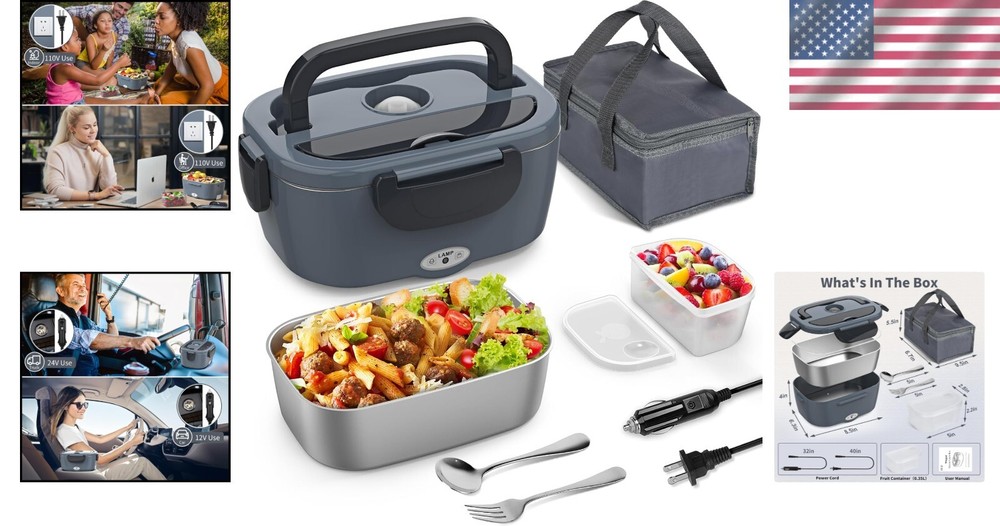 Electric Lunch Box 3-in-1 Heated Food Container, 1.5L, Black/Grey, Portable ‹ › ‹ › ‹ › ‹ › ‹ › ‹ › ‹ › ‹ › ‹ › Electric Lunch Box 3-in-1 Heated Food Container Capacity: 1.5L Color: Black/Grey Features: Rapid Up to 80W Heating: Efficiently heats your meals in just 20-30 minutes! 3-In-1 Versatility: Works with 110V for home and office, 12V for cars, and 24V for trucks. Generous 1.5L Capacity: Removable stainless steel container with an additional plastic box for fruit or sauce. Sealed and Leak-proof Design: Airtight lid ensures freshness and prevents spills. Benefits: Experience the luxury of a warm, home-cooked meal anytime, anywhere. No need for a microwave – just plug it in and enjoy delicious meals on-the-go. Perfect for busy professionals, outdoor workers, and road enthusiasts. Dishwasher safe stainless steel container for easy cleanup. Thoughtful gift for anyone who values healthy, warm meals. Why choose our Electric Lunch Box? Say goodbye to cold meals and culinary disappointments with our Electric Lunch Box. With its powerful heating system, generous capacity, and versatile power options, you can indulge in freshly warm meals whether you are at home, in your car, or at the office. The leak-proof design keeps your food secure and fresh while making it the ideal companion for those with busy lifestyles. Don’t settle for less when it comes to mealtime satisfaction—order your Electric Lunch Box today and experience the convenience and joy of warm food, wherever life takes you! Shipping Free & Fast Shipping - We offer free shipping to most of the USA with a normal delivery time of 3-7 days. However, due to the current situation, additional delivery time (up to 3 weeks) may be required for some items. Alternative Carriers - We may use alternative carriers (e.g. USPS, FedEx, UPS, etc.) to ensure your package arrives safely and on time. Due to the use of multiple carriers, we are unable to provide a tracking number automatically. Handling Time - Orders are processed and shipped within 1-2 business days of receiving cleared payment. Shipping Restrictions - Shipping to Alaska, Hawaii, Puerto Rico, Guam, and other US territories may incur shipping charges or delivery restrictions. Please contact us before ordering, or your order can be refunded/cancelled. State Restrictions - There may be restrictions based on your state of purchase. For example, certain items may not be shipped to California due to state regulations. Contact for Tracking Updates - If you require tracking updates or have any concerns about the delivery of your order, please feel free to contact us, and we will be happy to assist you. Return 30-Day Hassle-Free Returns - We want you to be completely satisfied with your purchase. If you are not, you can return the item within 30 days of receiving it for a full refund or exchange. Easy Return Process - To start a return, simply contact us and we will provide you with a prepaid return shipping label and detailed instructions. Restocking Fee - There are no restocking fees for returns. However, the buyer is responsible for return shipping costs if the return is not due to a seller's error. Refund Processing Time - Refunds will be processed within 5 business days of receiving the returned item in its condition. Payment We accept all major credit cards, PayPal, and Apple Pay for your convenience. Your payment information is secure and encrypted to ensure a safe and seamless transaction. Please complete your payment within 3 days of purchase to avoid any delays in shipping. Feedback Your feedback is extremely important to us. We strive to provide the best products and customer service possible. If you are satisfied with your purchase, please take a moment to leave us a positive review. If you have any concerns or issues with your order, please contact us before leaving negative feedback. We are committed to resolving any problems and ensuring your satisfaction. Contact Us If you have any questions or concerns, please feel free to out to our customer support team. You can contact us through the eBay messaging system. We are available Monday to Friday, 9:00 am to 5:00 pm EST, and we will do our best to respond to your inquiry within 24 hours. Buy it now and enjoy a pleasant shopping experience! Unit Quantity: 1 Material: Plastic,Stainless Steel,304 stainless steel Department: Unisex Baby & Toddler,Adults Theme: Car Features: Dishwasher Safe,Easy Clean,Easy to Clean,Leak Proof,Snap Lid Set Includes: Lid,Electric Lunch Box Item Height: 4.29 Inches Item Width: Electric Lunch Box Type: Electric Lunch Box Color: Black Grey Number of Items in Set: 1 Number of Compartments: 1 Lid Type: Snap Lid Style: Modern Shape: Rectangular Item Diameter: 8.5 in Item Depth: 4.29 in Capacity: 1.5L Unit Type: Unit