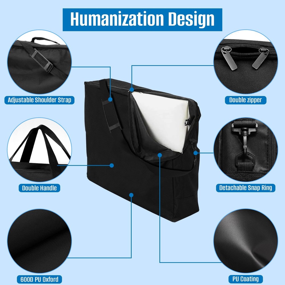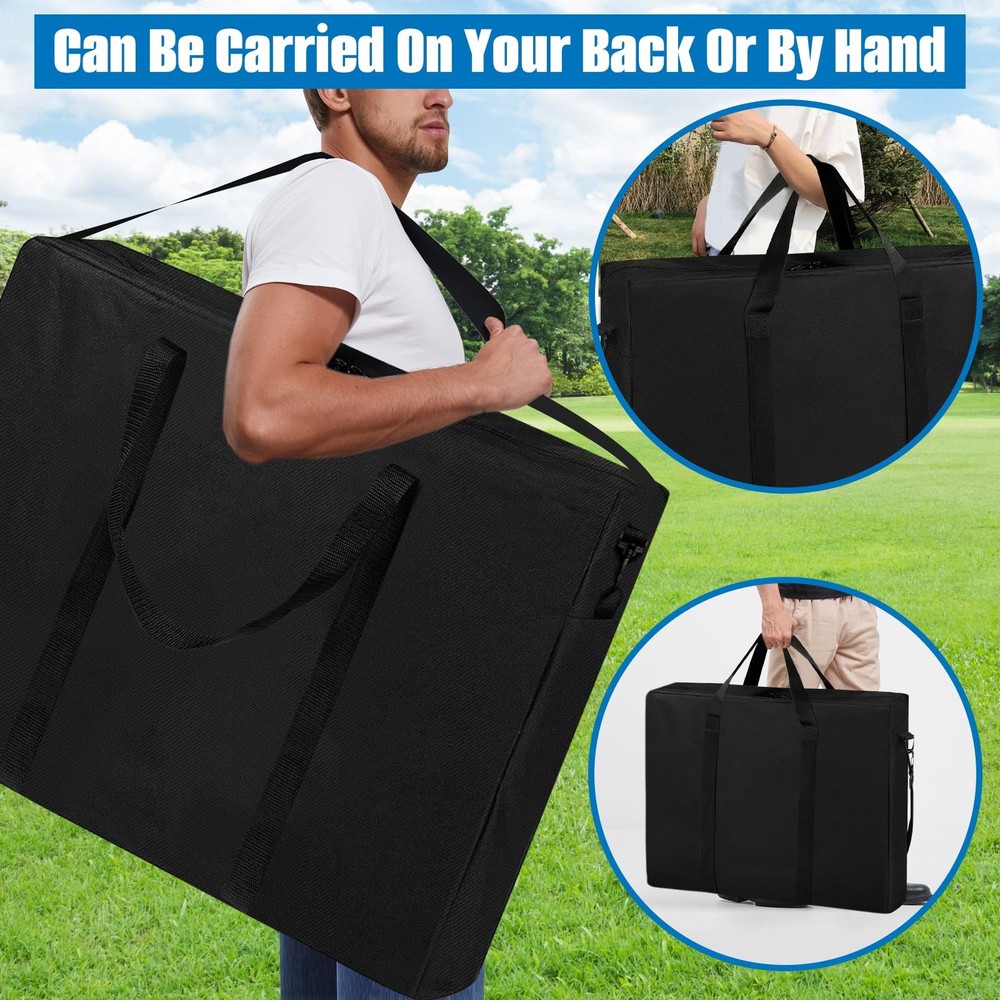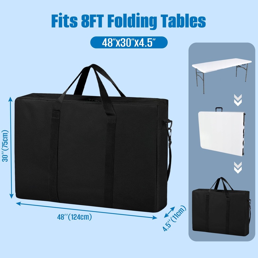 1 【Sturdy Fabric】: Using 600D heavy duty oxford cloth, the product is wear-resistant and durable, with strong load-bearing capacity and long service life. 【Humanized Design】: The large Double-open "U-shaped" zipper design makes it easy to take out and store the Folding Table.(NOT SIZE: 48″x30″x4.5″ / 124x75x11cm Fits 8FT Folding Tables, please check your table dimensions to ensure you select the correct folding table storage bag). 【Product function】: This Folding Table bag can effectively prevent the intrusion of dust or dirt and is waterproof, extending the service life of your Folding Table.Reduce scratches or stains when taking the folding table outdoors. 【Easy To Carry】: The long shoulder strap can transport the Folding Picnic Tablesto any place. Side padded handles offer extra option to transport, for easy carrying Folding Table from home to outdoor.( NOTE: Bag Only ) 【Excellent Service】:We are committed to satisfying buyers with the best shopping experience, 100% 60-day return service is provided for all products you purchase. If you are not satisfied with the product, please contact us directly (even outside of the Amazon return window)