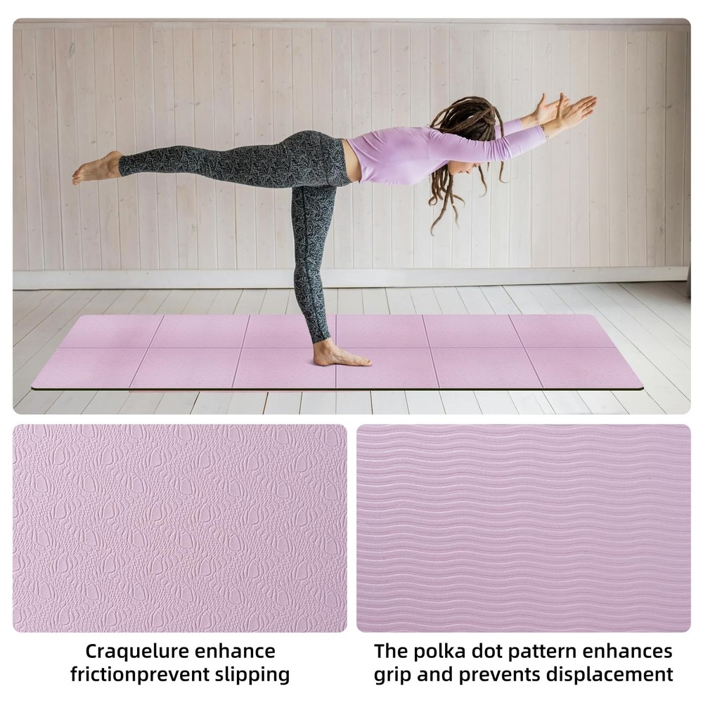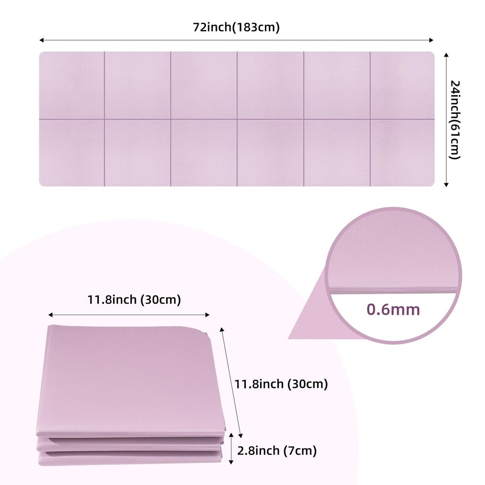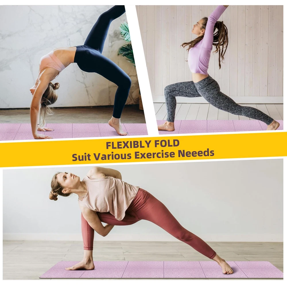 QCBF Foldable Yoga Mat for Travel, 6-8mm Thick, with Storage Bag, non Slip Tpe Sports Pilates Mat, 72 x 24 x 0.2Inches Foldable Design: This Fitness Mat is Foldable And Easy to Store, Making it Perfect for Use at Home And in The Gym. It Comes with a Storage Bag in The Packaging, So You Can Store And Organize The Folded Yoga Mat in The Storage Bag. Multifunctional Fitness Mat: This Yoga Mat Can Be Used for a Variety of Exercises, Including Yoga, Pilates, Stretching, Muscle Training, And More. It's Suitable for All Ages and Levels of Fitness and Can Be Used Both Indoors and Outdoors. Double-Sided Anti-Slip Surface: Features a Double-Sided Anti-Slip Design, with a Polygonal Texture on The Touches The Skin Side for a Comfortable Grip and a Wave Texture on The Touches The Floor Side for Stability and Slip-Resistance. High Quality: This Yoga Mat is Made of High-Quality Tpe Material. Dense And Elastic Materials Provide Excellent Cushioning and Shock Absorption Effects, Protecting Your Joints and Ensuring Comfortable Exercises. Easy To Clean: Use a Spray Bottle To Wipe The Stain With a Small Amount of Water, or Wet it With Moderate Water to Clean.