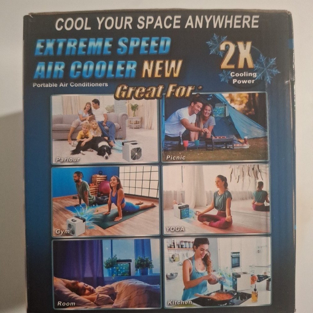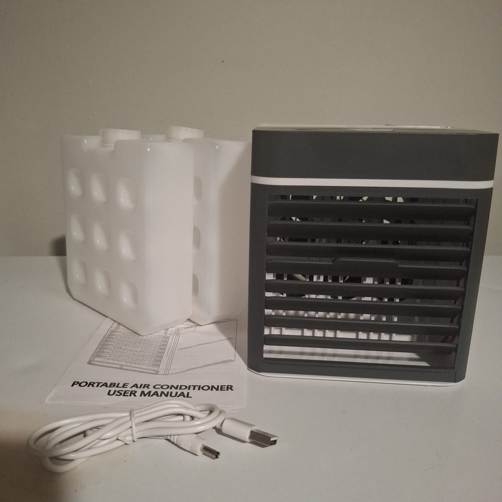 Compact personal air cooler designed for desks, bedrooms, offices, campers, and small spaces. Features 3 adjustable speeds and an anti-leak water tank for mess-free cooling. Easy to use, lightweight, and USB-powered for portability. FEATURES 3-speed airflow control Anti-leak water reservoir Cools, humidifies, and refreshes Quiet operation USB-powered Perfect for personal use in small areas ITEM SPECIFICS Type: Personal Mini Air Cooler Power Source: USB Speeds: 3 Tank: Anti-leak design Condition: New in Box Room Size: Personal/small area Functions: Cooling + humidifying