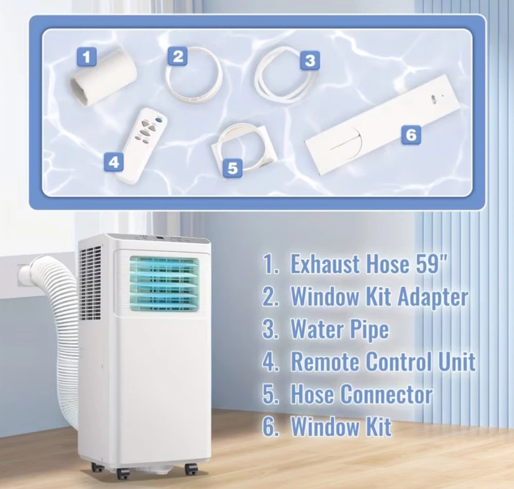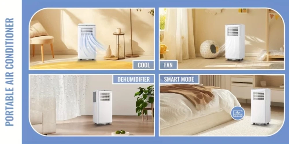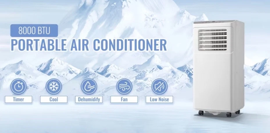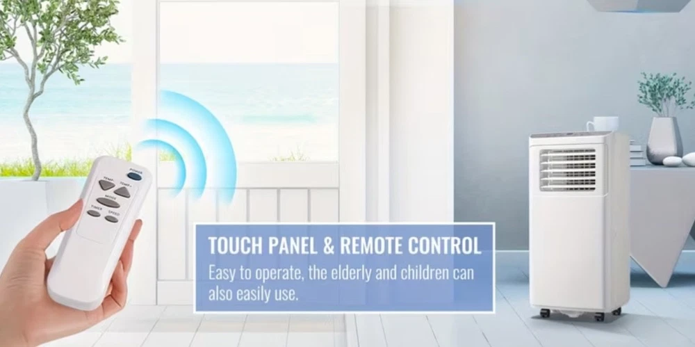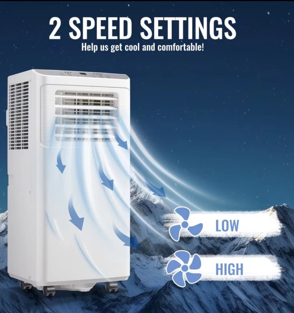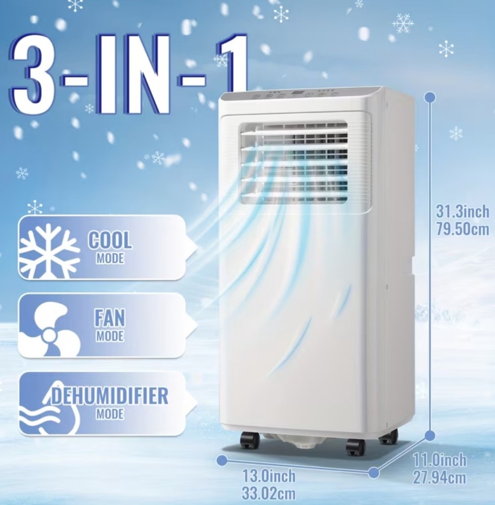 The Portable Air Conditioner is a versatile 3-in-1 unit that provides cooling, dehumidification, and fan functions. With a powerful 8000 BTU cooling rating, it can effectively cover an area of 201-250 sq ft. It comes in a sleek white color and features a convenient remote control for easy operation. This unit is plug powered and designed for portability, making it ideal for use in various environments. With a 24-hour timer and dehumidifier capabilities, this air conditioner offers added convenience and functionality for a comfortable living space.