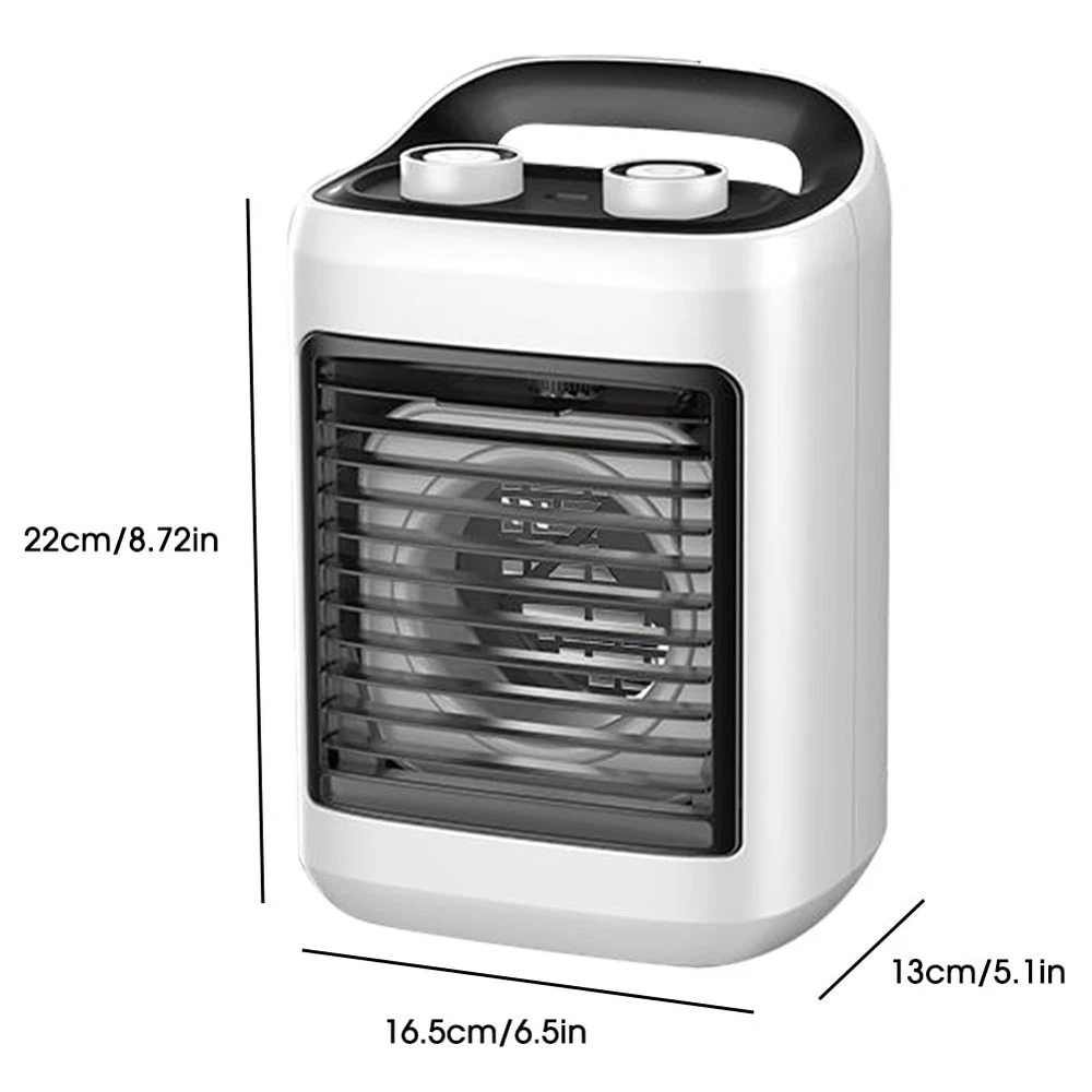 Stay cool anywhere with this Portable Air Conditioner Fan—a must-have for summer! Its 3-in-1 evaporative cooling system instantly lowers temperatures by absorbing heat and circulating chilled air. Includes: 1x Portable Air Cooler, 1x USB Cable, 1x User Manual. Perfect for: Hot sleepers, office workers, camping trips, or anyone needing a budget-friendly alternative to bulky AC units! WIDE RANGE OF USES - Evaporative air conditioner is more suitable for personal cooling due to its compact size. It is suitable for desks, bedside tables, dining tables, offices, dormitories, etc. It is not suitable for cooling the whole room, please do not place it too far away from you. 6 SPEEDS ADJUSTABLE WIND SPEED - This mini air conditioner has 6 adjustable wind speeds, and the up and down blowing angle can be manually adjusted 90° to meet your different needs. (Note: Adapter not included, suitable for USB adapter above 5V 2A) EASY TO USE - With just one touch, the chiller can easily adjust the wind speed, easy to operate, bringing you a comfortable summer cool. With its low noise level (less than 45dB), this chiller will not affect your life, work or sleep. USB POWERED - All you need to do is fill the ice box of this countertop air cooler with water, plug it into a USB port or power bank, and turn it on. ▶️ NOTE: The ice box is located behind the grill (ice box needs to be pre-filled with water and frozen). ENERGY EFFICIENT AND HEALTHY - The air cooler is ozone free refrigerant, making it a healthy choice for your family. It is space-saving and affordable, making it an ideal summer gift for you and your friends and family.