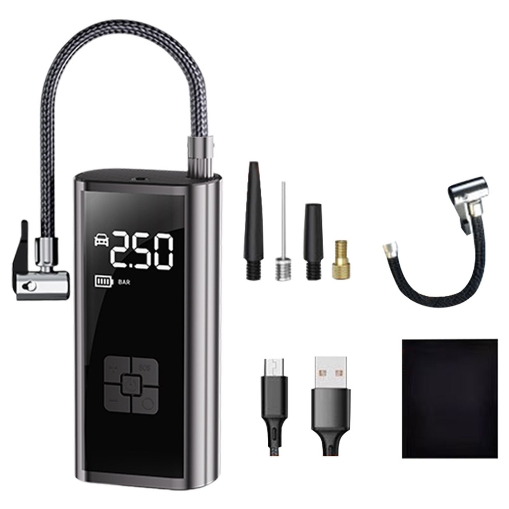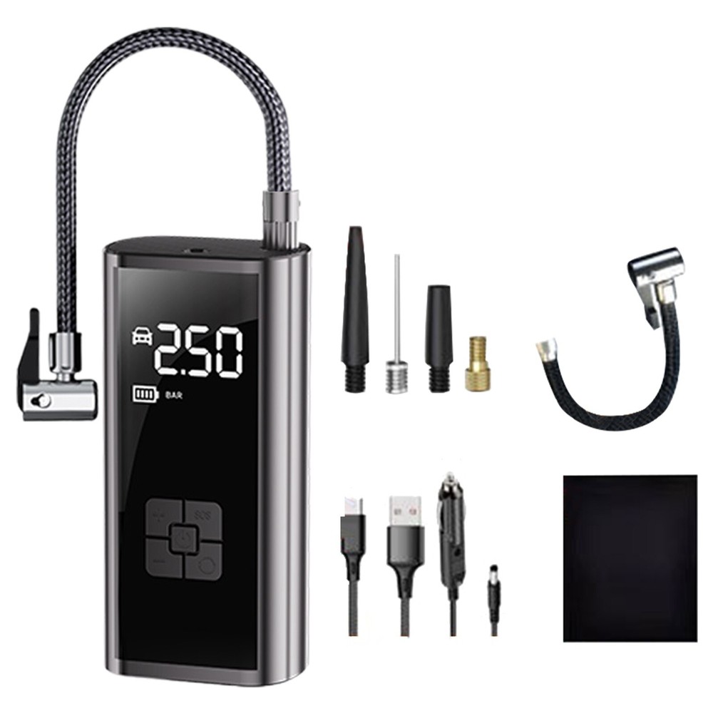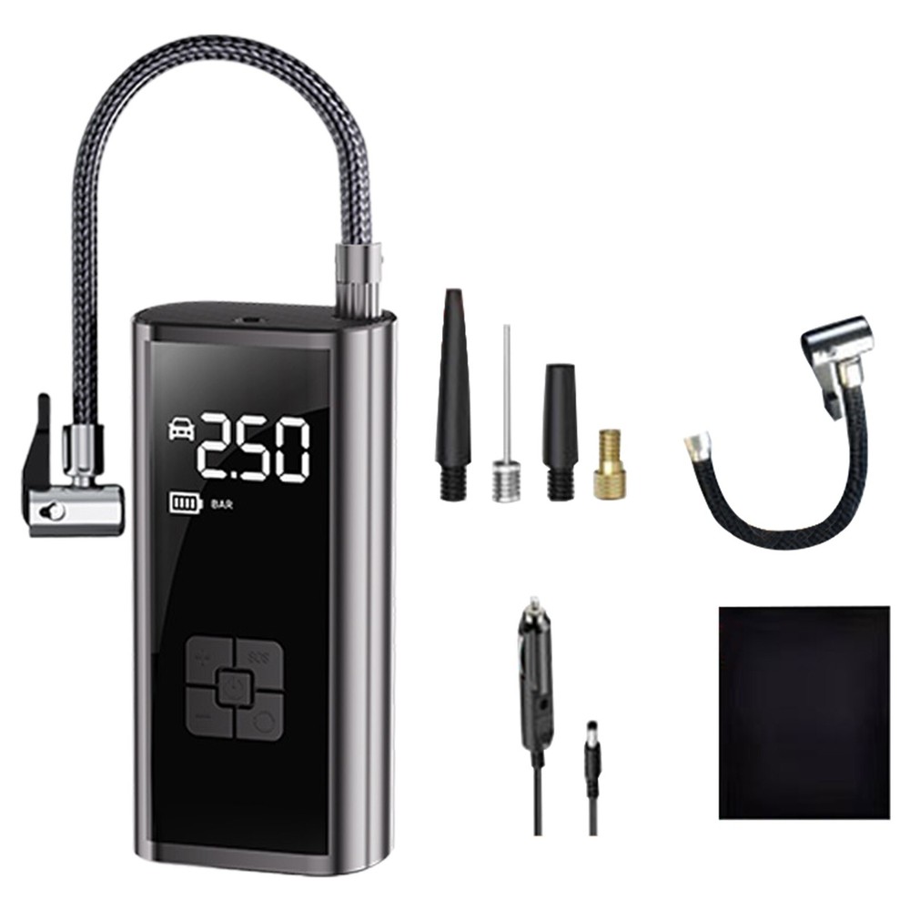 Tire Inflator 120 Charge And Plug Portable Pump 19L/Min Fast Inflation For Cars Cars Motorcycles Etc Convenient Quick And Easy To Carry Features: Rechargeable or Plug-in Use: 2.5m is connected to plug-in use, of external power supply; 0.5m data cable charging use, battery capacity of 4500 mah, there is enough battery life. Tire Pressure Detection: The clear LED display allows you to view the tire pressure data at any time, and the tire pressure detection accuracy is high, up to ±0.5 or 0.05bar, which can avoid hazards caused by inaccurate tire pressure. Stop After Full Inflation: The user can set the tire pressure, and it will automatically stop inflation after reaching the set tire pressure to over or under inflation, and dry the when inflating to increase the durability of the tire. Fast Inflation: Equipped with efficient brushless motor, 19L/min fast inflation, discharge during inflation, lower heat, with multiple heat dissipation design, avoid overheating and extend the service life of the vehicle pump. Other Practical Features: The pump also has LED lighting, which can be illuminated at night or in poor light conditions, improving , and has an emergency charging function, which can charge devices such as mobile phones. Product Description: Tire Inflator 120 ,Charge and Plug Portable Pump,19L/Min Fast Inflation for Cars, Cars,Motorcycles,Balls, Etc Material: Plastic Color: as the picture shows, (Due to the difference between different monitors, the picture may have slight color difference. please make sure you do not mind before ordering, Thank you!) Package weight: 565g Package size: 21.5x16.5x8cm,(Please allow 1-3mm error due to manual measurement. please make sure you do not mind before ordering.)