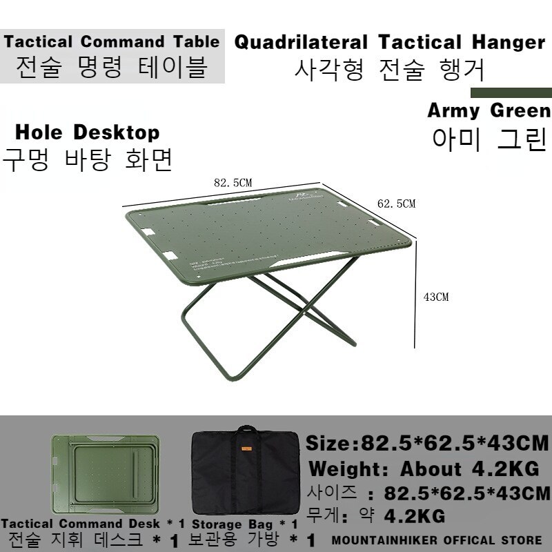 Product Information Product Name: Tactical Command Table Material: Plastic Sprayed Aluminum Alloy (Matte Matte) Color: Fine Sand Yellow/Black/Army Green Expand Size: 82.5 * 62.5 * 43CM Storage Size: 82.5 * 62.5 * 3CM Weight: About 4.2KG Load: About 40KG Package: 1* Folding table 1*Storage Bag There Is A Small Error In Manual Measurement, Subject To The Actual Product