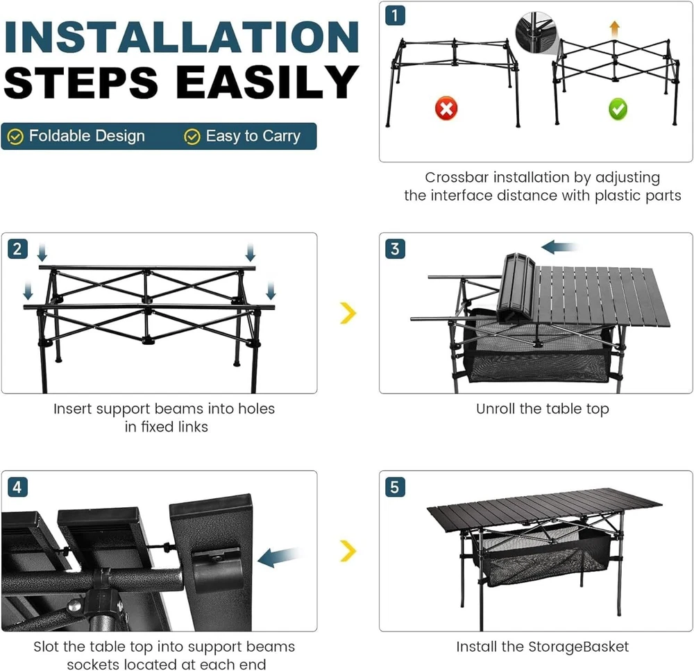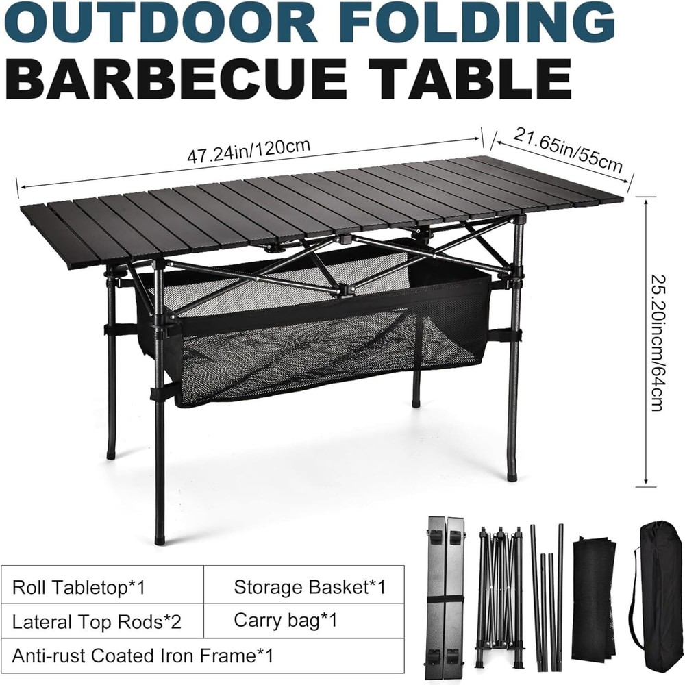 Portable Aluminum Roll-up Camping Picnic Table for Outdoor Adventures