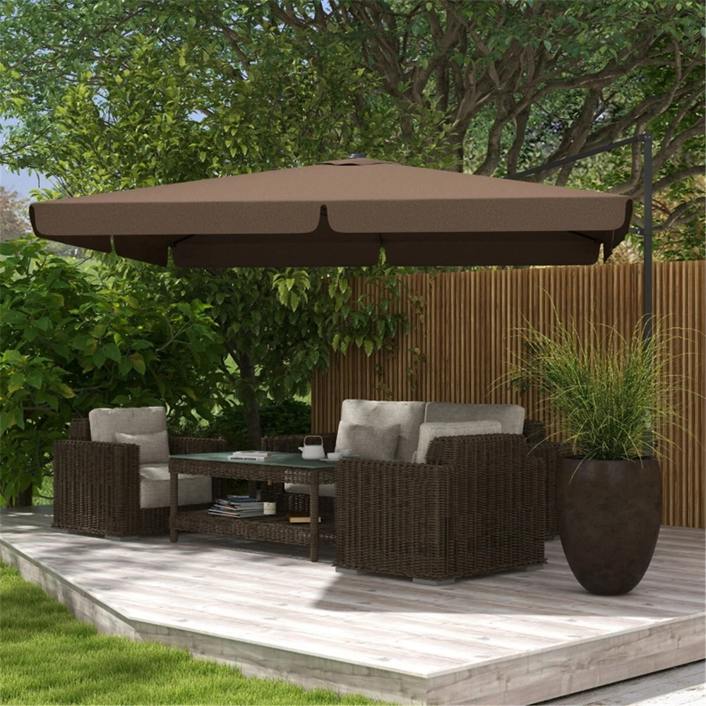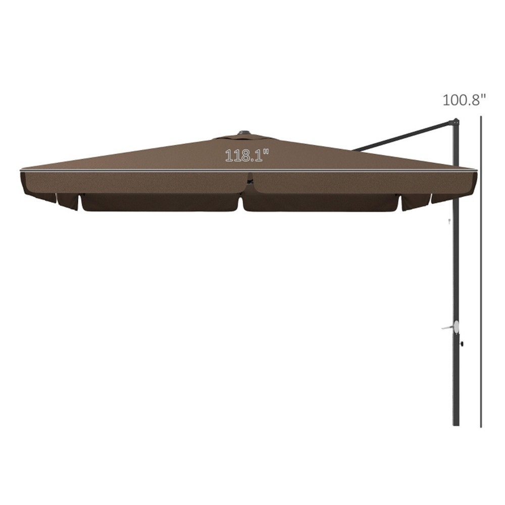 Features: - 4-level adjustable canopy for shade that adapts - A vented canopy on eight metal ribs helps it stay stable against the wind - Made of polyester and a powder-coated aluminum frame for stability - Strap to keep your fabric secure when not in use - Assembly required Specification: - Color: Tan - Materials: Steel, Aluminum Polyester - Overall Dimensions: 118" L x 118" W x 100.75" H - Canopy Bottom Height: 75.25" - 83.75" H - Cross Base Size: 39" L x 39" W x 1.5" H Package Includes: - 1 x Cantilever Patio Umbrella - 1 x Screw Set