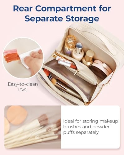 Portable Beige Travel Makeup Bag with Wide-Open Organizer