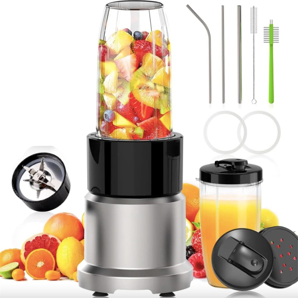 Personal Blender for Shakes and Smoothies, 2 Large 20oz Cups Included, 6 Sharp Blades, Blends Ice, Portable Frozen Blender, 800Watt Peak Blending [800W POWERFUL MOTOR] Powerful motor that will beldn all your ice and frozen shakes with ease, trust our blender to give you the optimal blending experience [2 TRAVEL CUPS] We've included 2 20oz travel cups, tka them with you on the go or switch off between them for mutiple shakes per day [PUSH DOWN BLENDING] Easy and seamless blending for you, just push down and let the blending happen with ease. [6 BLADE SHARPNESS] Blending ice and hard foods with ease, Our powerful will make perfect consistency smoothies, and shakes