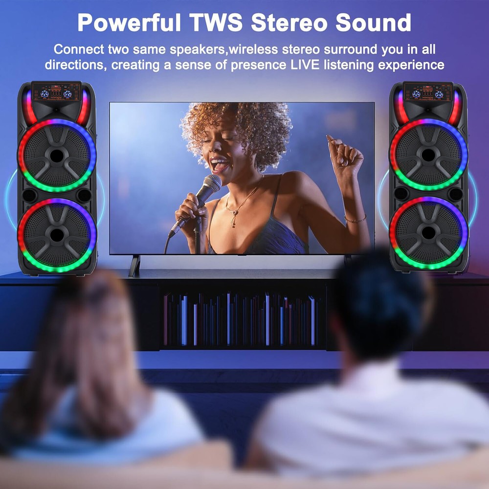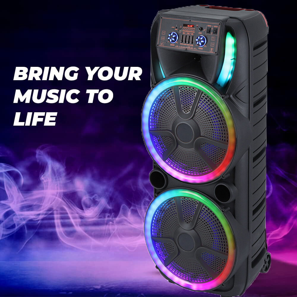 Portable Bluetooth Speaker Dual15'' Sub Woofer Heavy Bass Sound System Party Mic